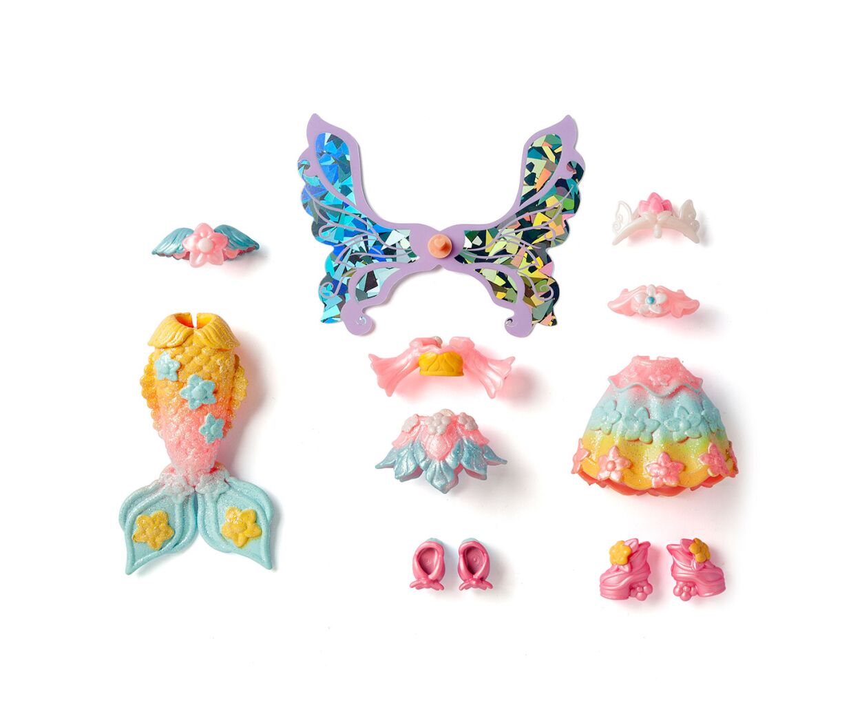 - 1 кукла, 3 образа одежды, 2 пары обуви, 1 тиара