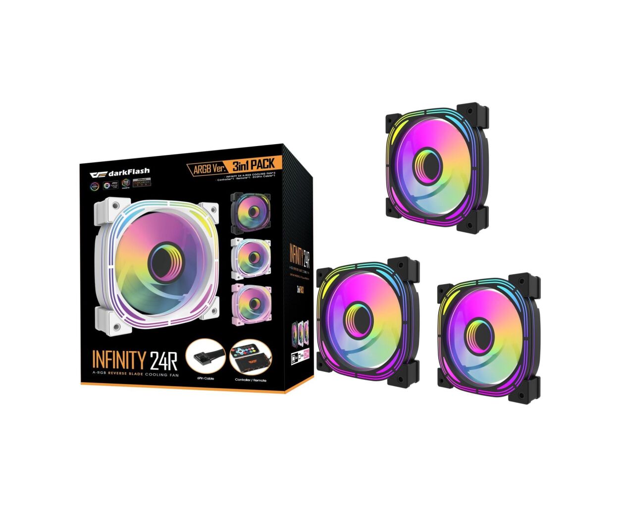 Кулер для корпуса DARKFLASH INF24 3IN1(PWM) BLACK