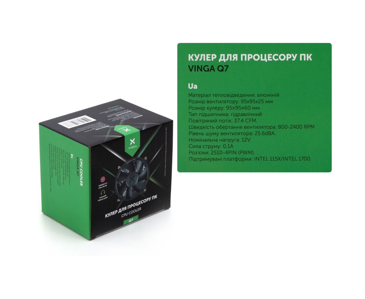 Выбрав кулер Vinga Q7, вы получаете оптимальное сочетание качества, эффективности охлаждения и экономии. Это надежное решение для обеспечения продуктивной работы вашей компьютерной системы, которое соответствует всем современным стандартам и требованиям. Инвестируя в этот продукт, вы закладываете основу для стабильной работы вашего компьютера на долгие годы.