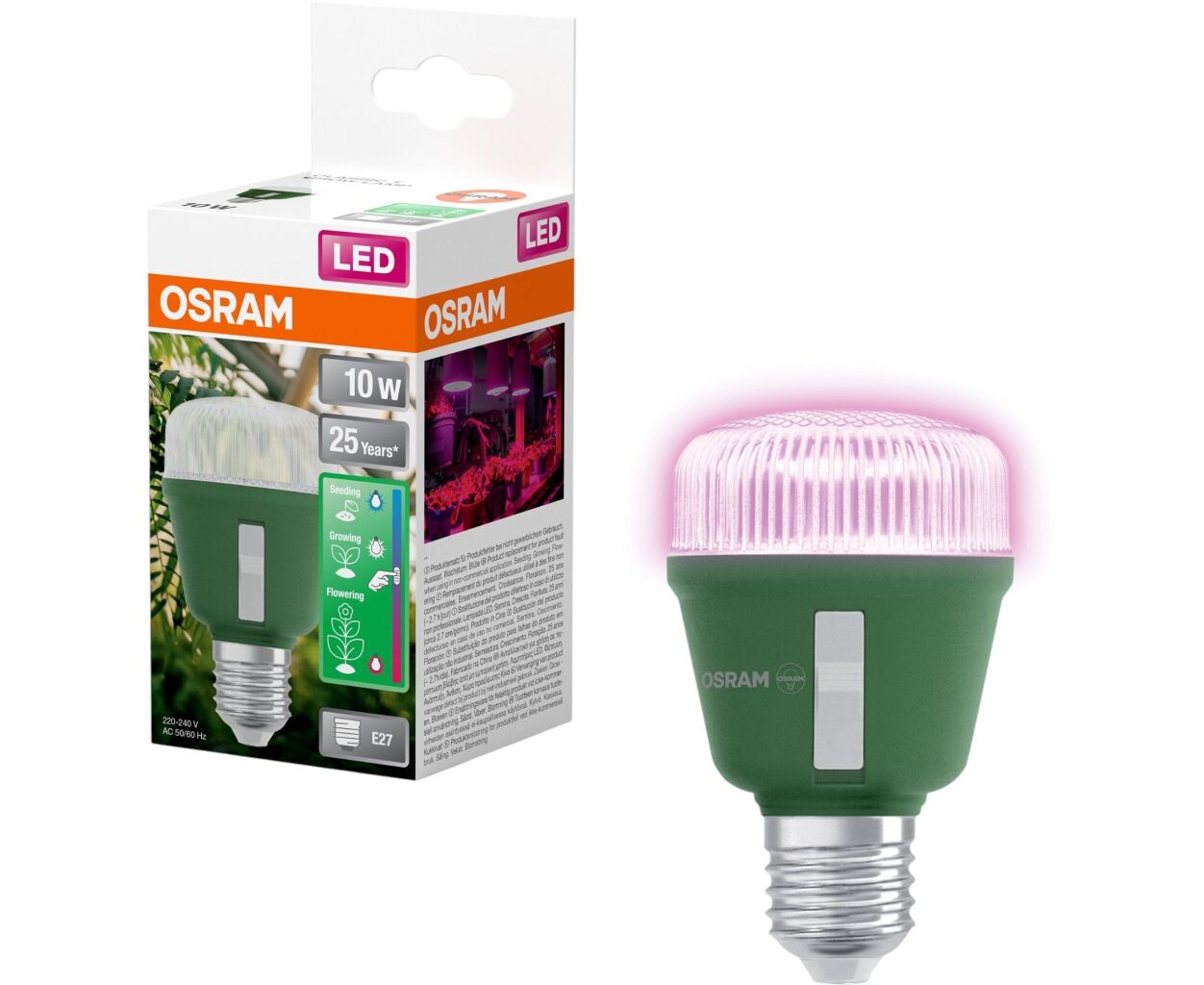 - Регулируется спектры света с помощью встроенного выключателя на кормусе лампы для 3-х различных этапов роста цветов и овощей: посев, выращивание и цветение.