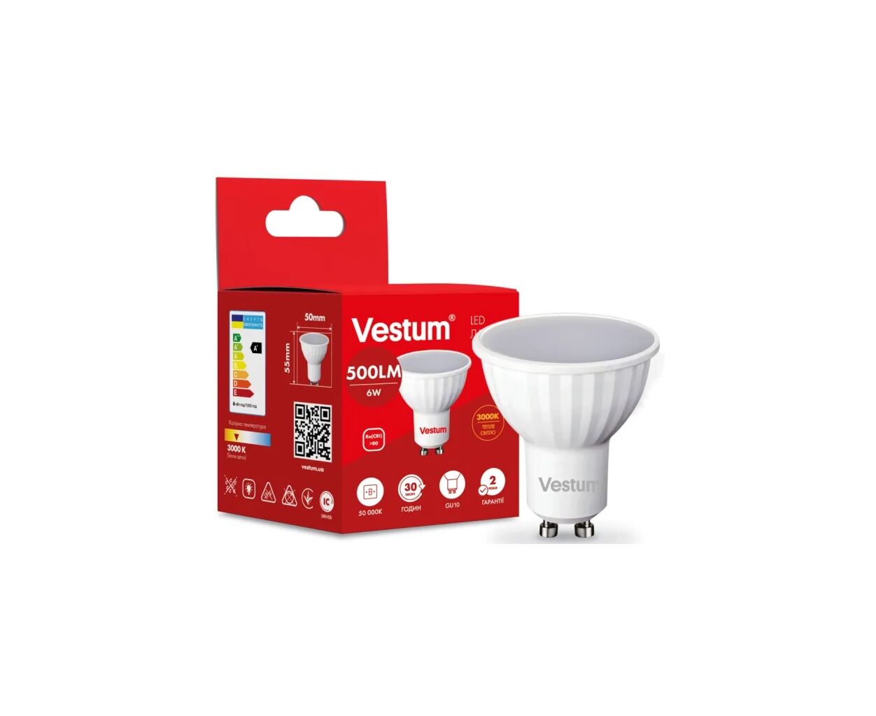 Характеристики Лампочка Vestum MR16 6W 3000K 220V GU10 (1-VS-1505)