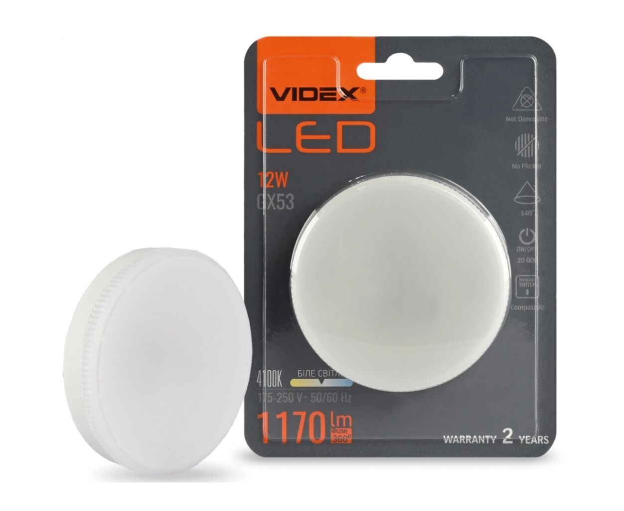 Лампочка Videx GX53 12W 4100K 220V (VL-GX53-12534)