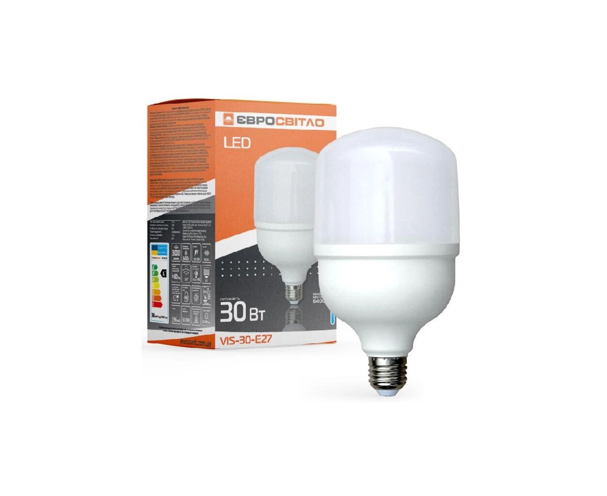 Лампочка Євросвітло 30Вт 6400К (VIS-30-E27)