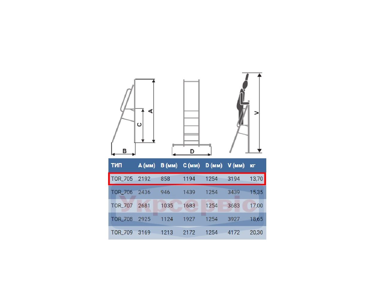 Описание Лестница ELKOP стременка-помост 5сх. верхняя ступенька-1,2м (TOR 705)