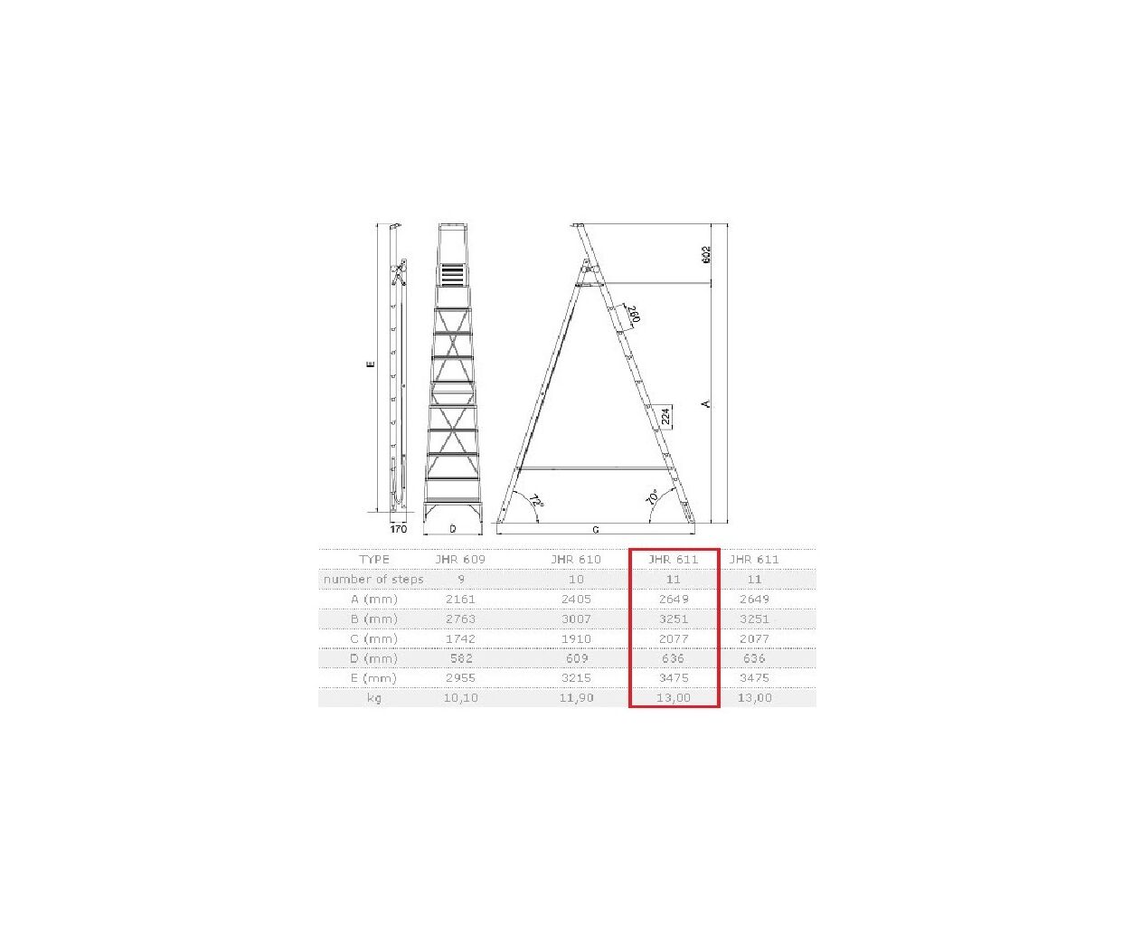 Описание Лестница ELKOP стремянка 11сх. верхняя ступенька-2,6м (JHR 611)