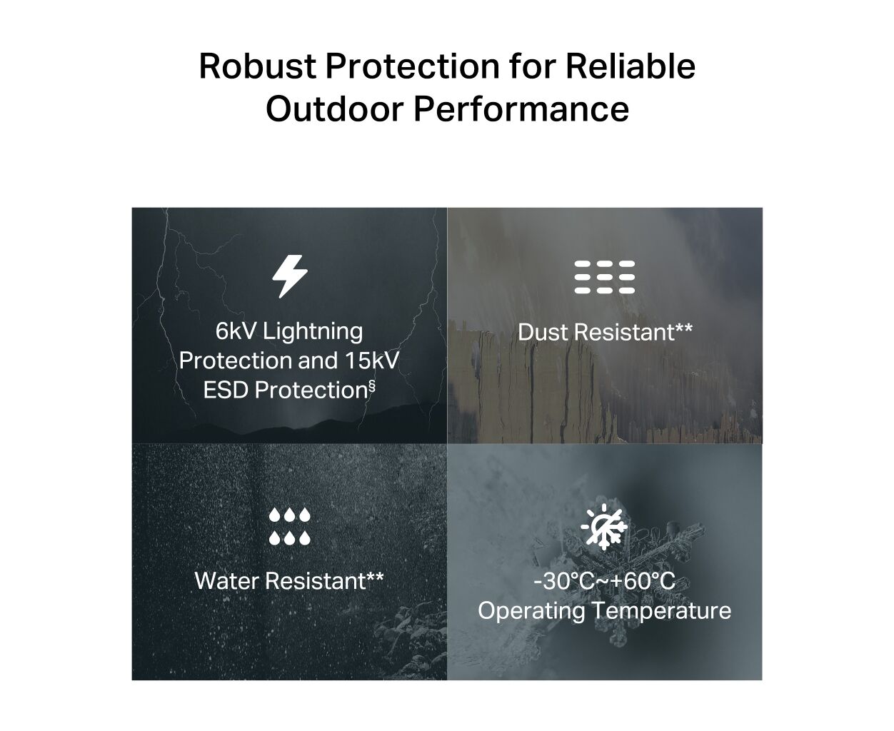 • Прочный внешний корпус: Надежное подключение и надежность внешнего подключения благодаря защите от атмосферных воздействий IP66**, молнии ±6 кВ и защите от электростатической разрядности ±15 кВ.§