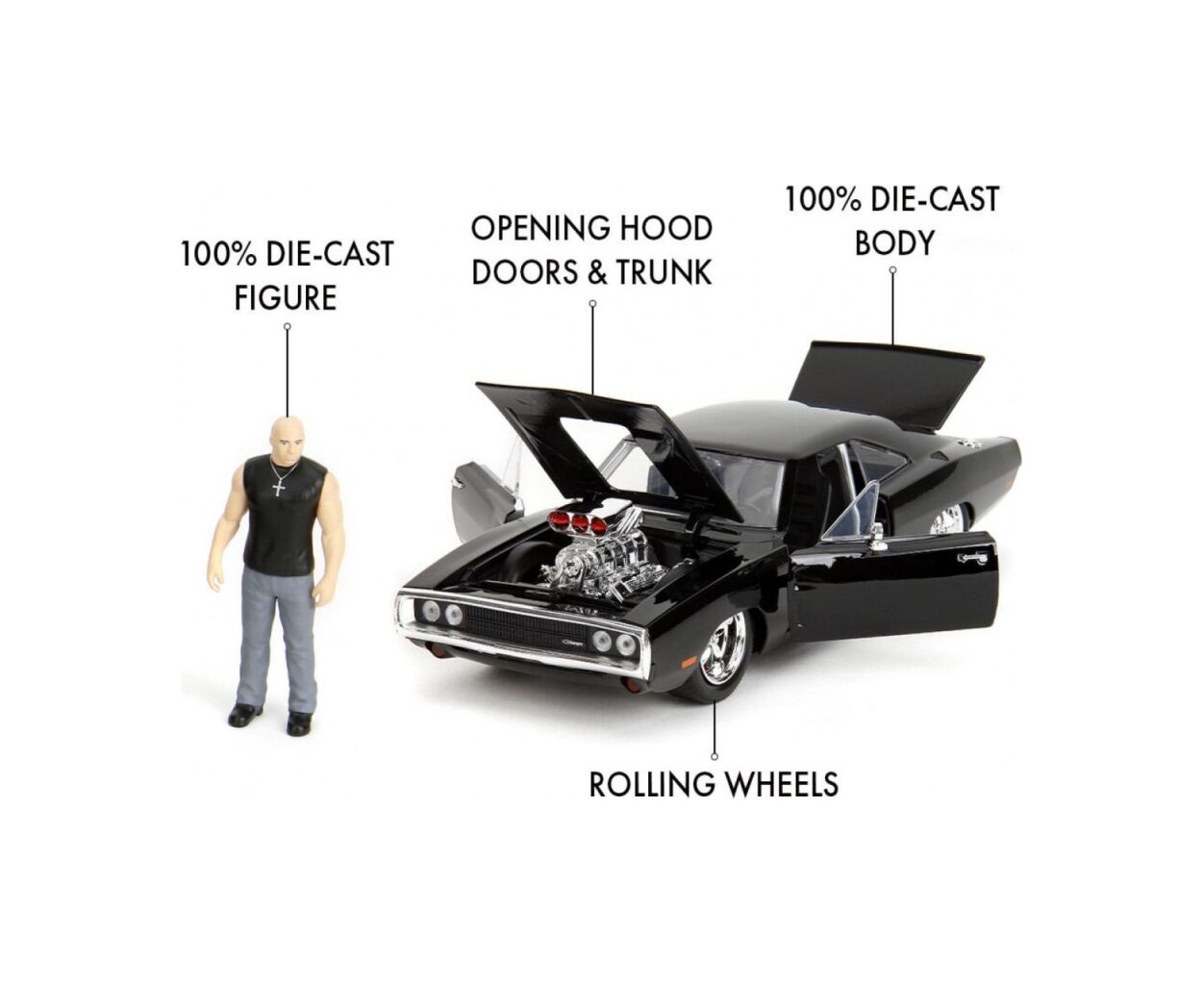 Машина Jada Форсаж Додж Чарджер 1970 с фигуркой Доминика Торетто черный (9335907314R00)