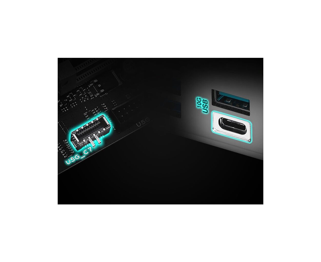 Материнская плата поддерживает Wi-Fi 6 для высокоскоростного беспроводного подключения. Один порт Realtek 1Gb Ethernet обеспечивает надежное проводное соединение.