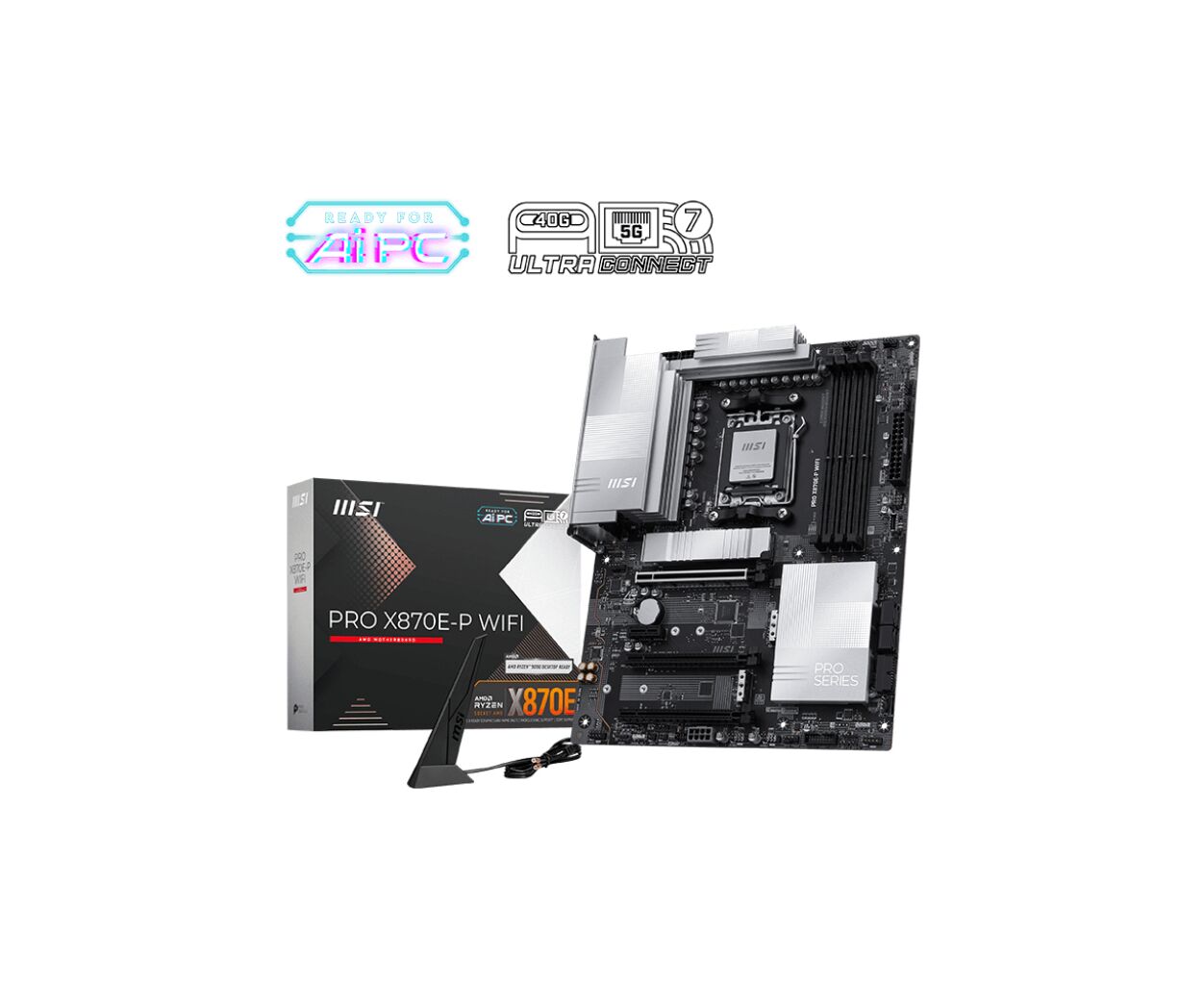 MSI PRO X870E-P WIFI — это высокопроизводительная материнская плата формата ATX, разработанная для профессиональных пользователей и энтузиастов. Она поддерживает процессоры AMD Ryzen серий 7000, 8000 и 9000 с разъёмом AM5 и оснащена современными технологиями для стабильной работы в условиях высокой нагрузки.