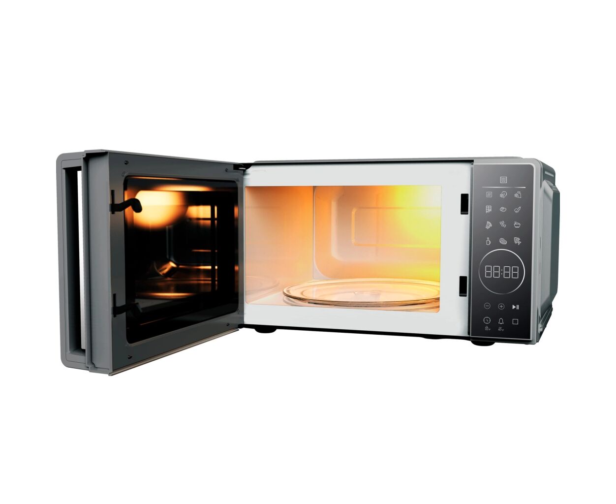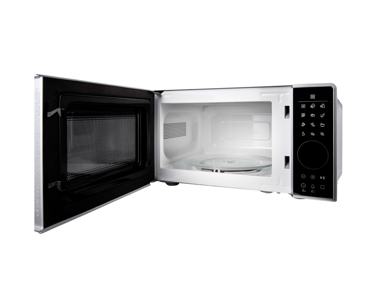 Тип - обычная (соло), отдельностоящая, объем - 20 л, мощность СВЧ - 700 Вт, тип управления - электронный, дисплей - да, автоотключение, блокировка работы при открытой дверце, диаметр поворотного поддона - 245 мм, подсветка камеры, таймер, Ширина - 44.6 см, Глубина - 33 см, Высота - 24.3 см, вес - 10 кг, серый