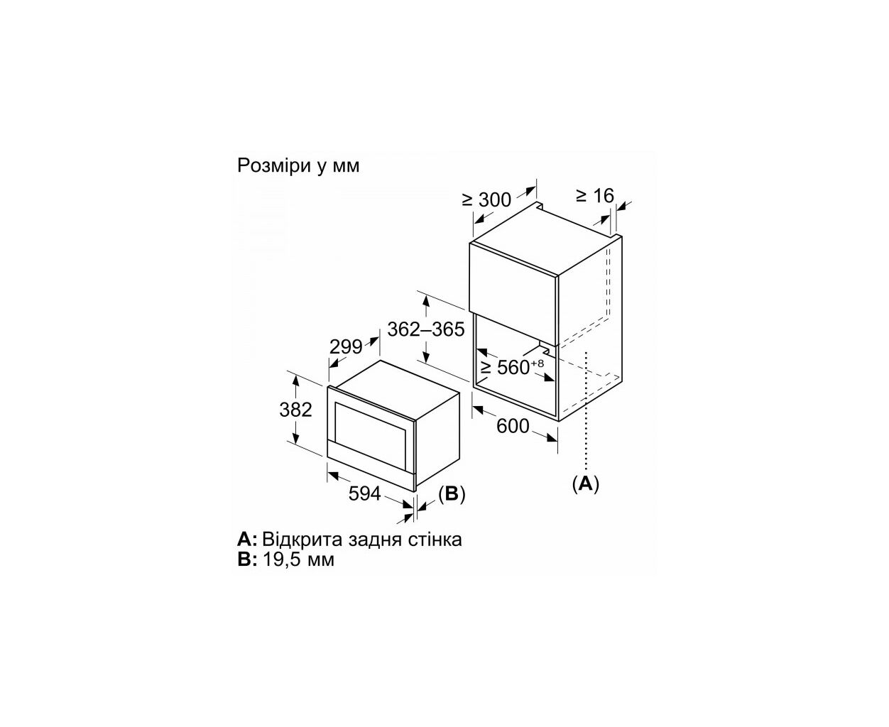 Размеры ниши для встраивания (ВxШxГ)