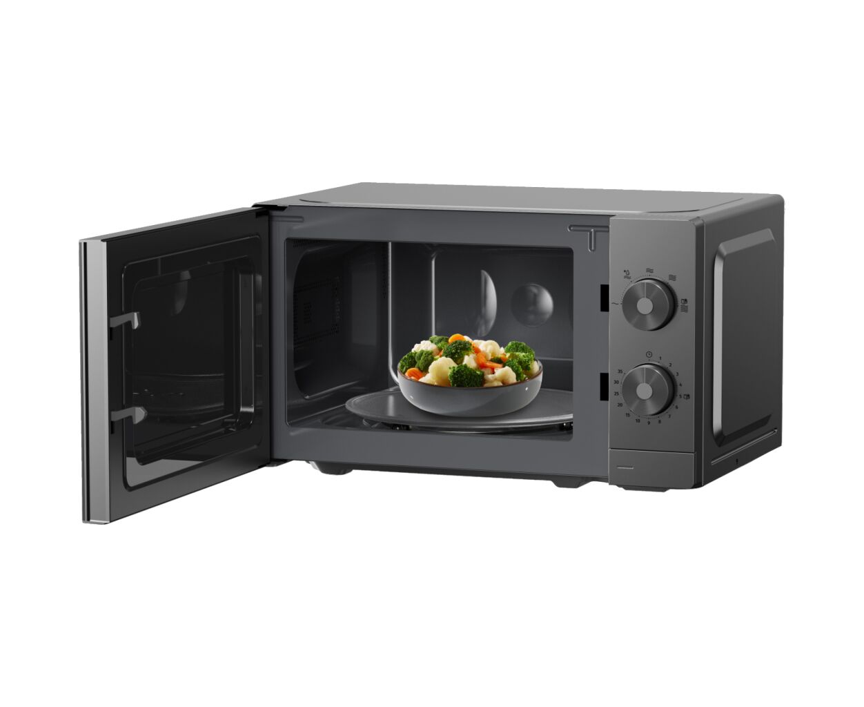 Общий объем микроволновки составляет 20 литров, что позволяет удобно разогревать или готовить небольшие порции еды, идеально подходя для повседневного использования. С мощностью в 700 Вт и пятью уровнями интенсивности приготовления, печь способна быстро справляться с разнообразными задачами, от простого подогрева до более сложных рецептов.