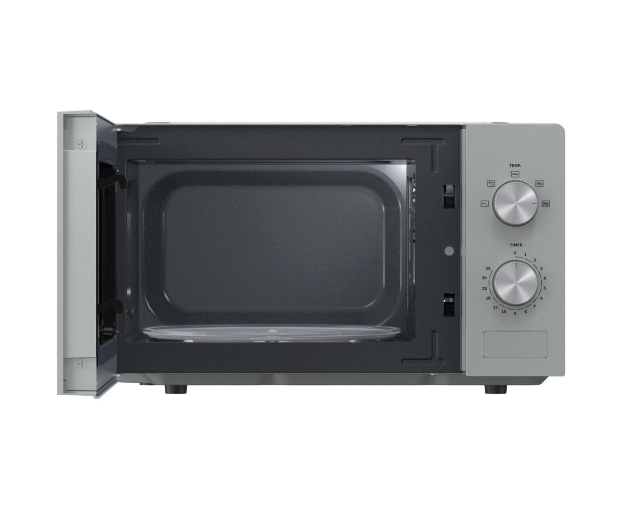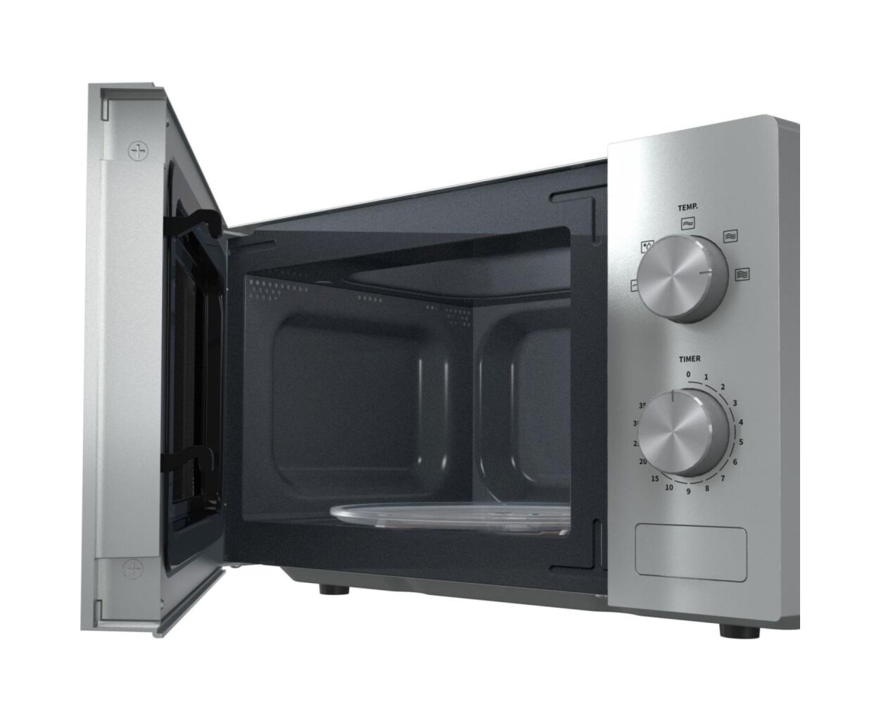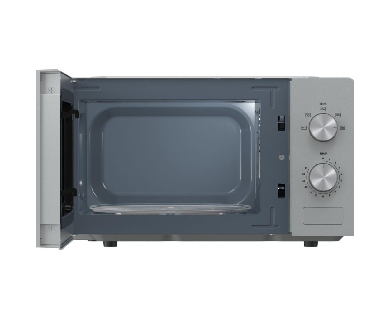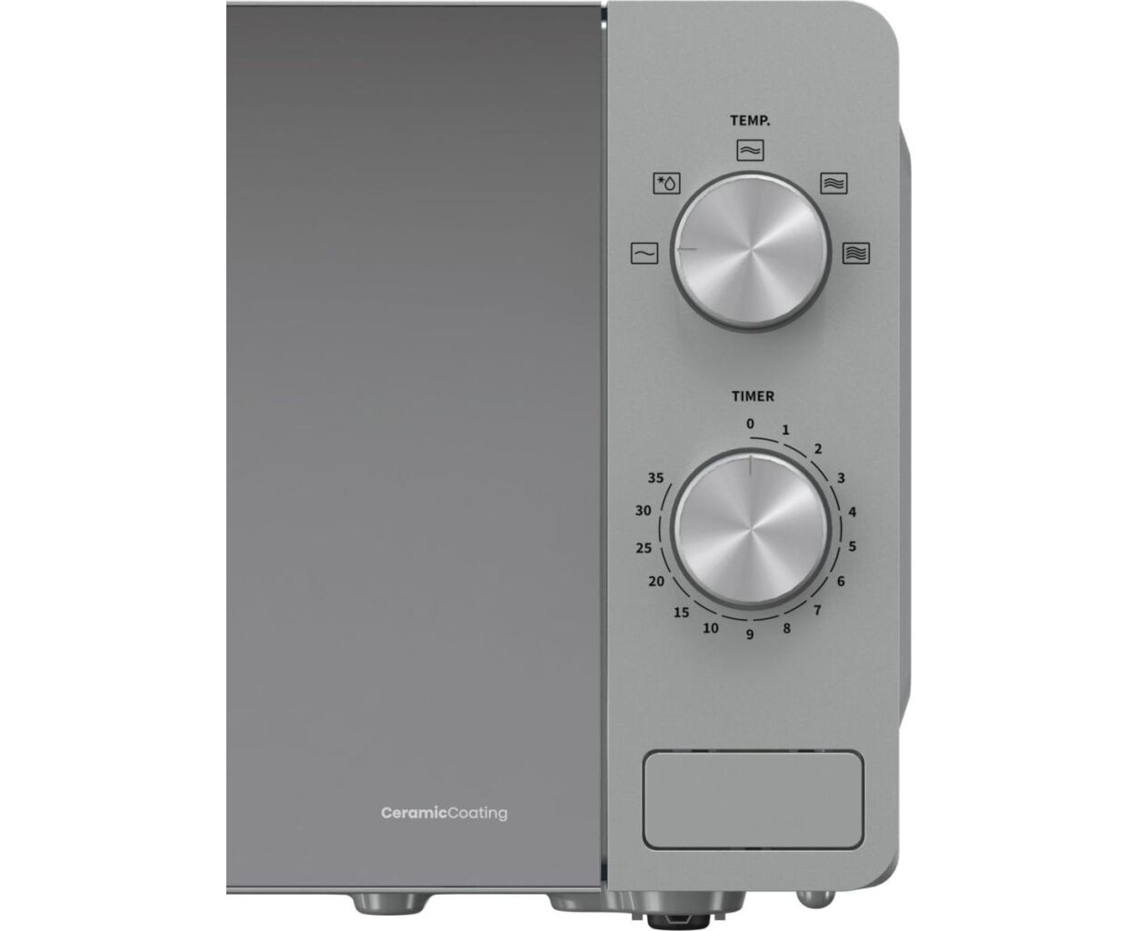 Эта микроволновка имеет серый корпус и компактные габариты (26,1 х 45,5 х 32,6 см) при весе 10,2 кг, что делает ее идеальным вариантом для любой кухни.