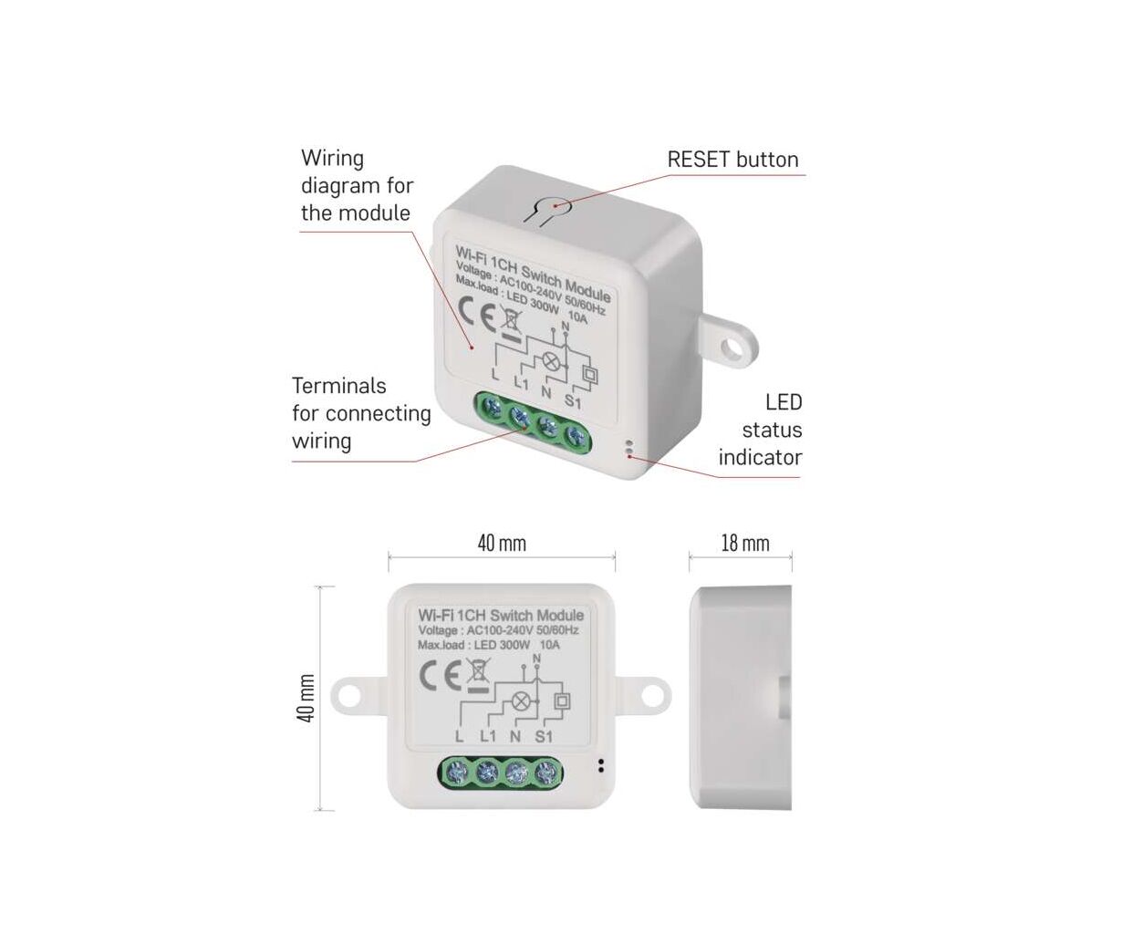 Беспроводной протокол - Wi-Fi, Рабочая частота - 2.4 ГГц, Android, IOS, Входное напряжение - 250 В, EMOS GoSmart, LIDL, Smart Life, Tuya Smart, пластик, 220В, 40 х 40 х 18 мм, 30 г, белый