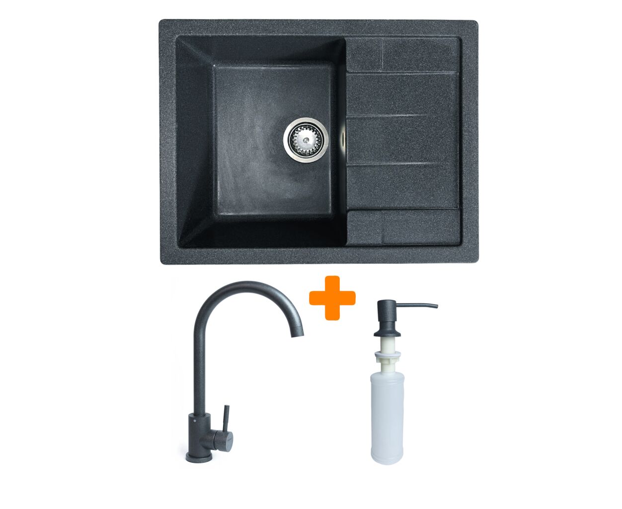Мойка кухонная Adamant Anila графіт + змішувач та дозатор (182496900313)
