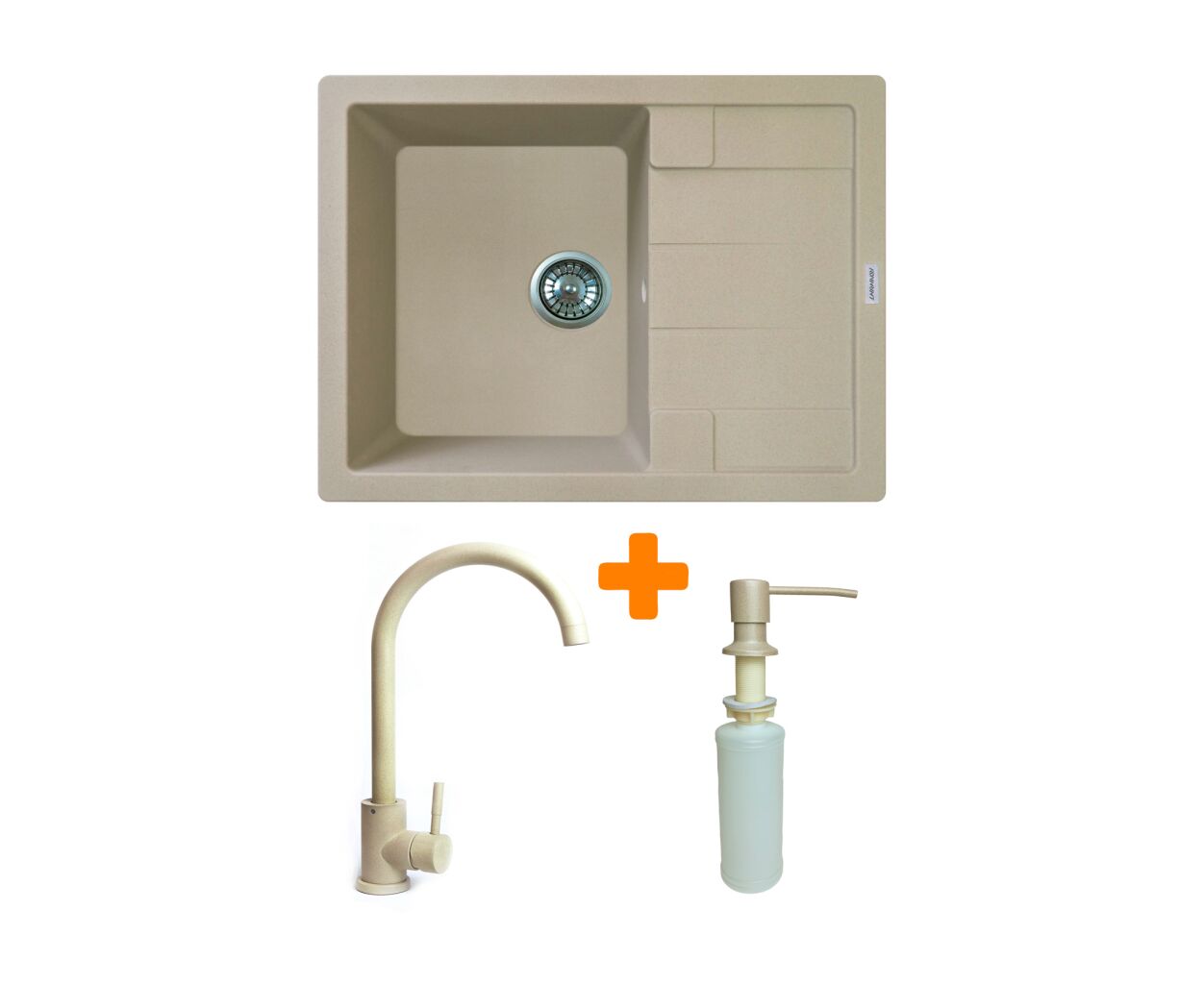 Кухонный набор Adamant Anila включает вместительную мойку из искусственного минерального материала, смеситель и дозатор моющего средства. Прямоугольная форма с крылом делает ежедневное использование удобным и организованным. Материал устойчив к высоким температурам, царапинам и бытовой химии, а непористая поверхность легко очищается. Смеситель обеспечивает плавное управление водой и изготовлен из безопасных долговечных материалов. Дозатор экономит пространство и упрощает доступ к моющим средствам.