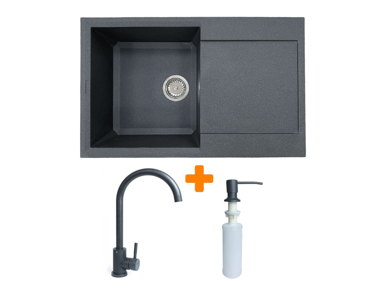 Мойка кухонная Adamant Horizon графіт + змішувач + дозатор (182496901513)