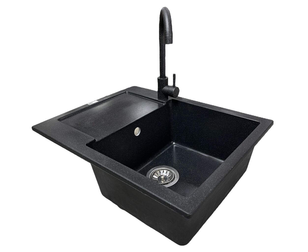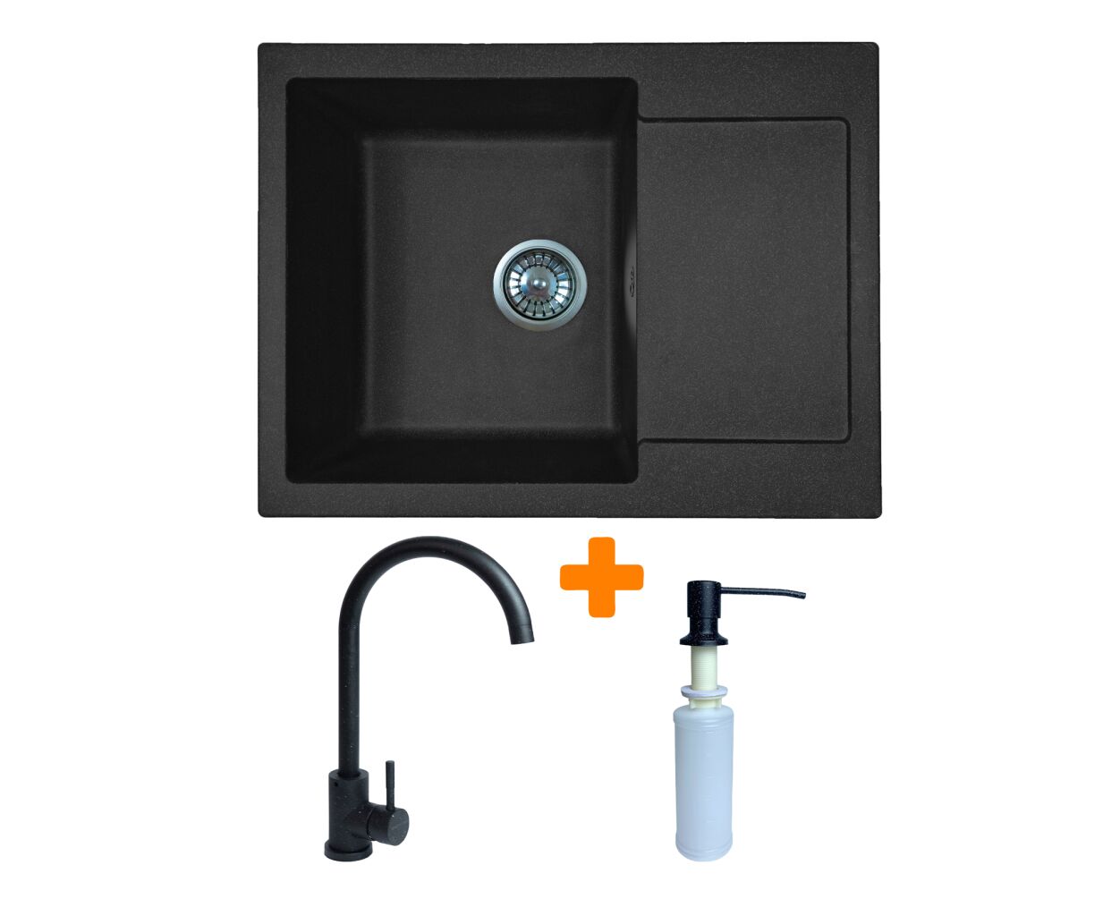 Мойка кухонная Adamant Minimal чорний + змішувач + дозатор (1824296902303)