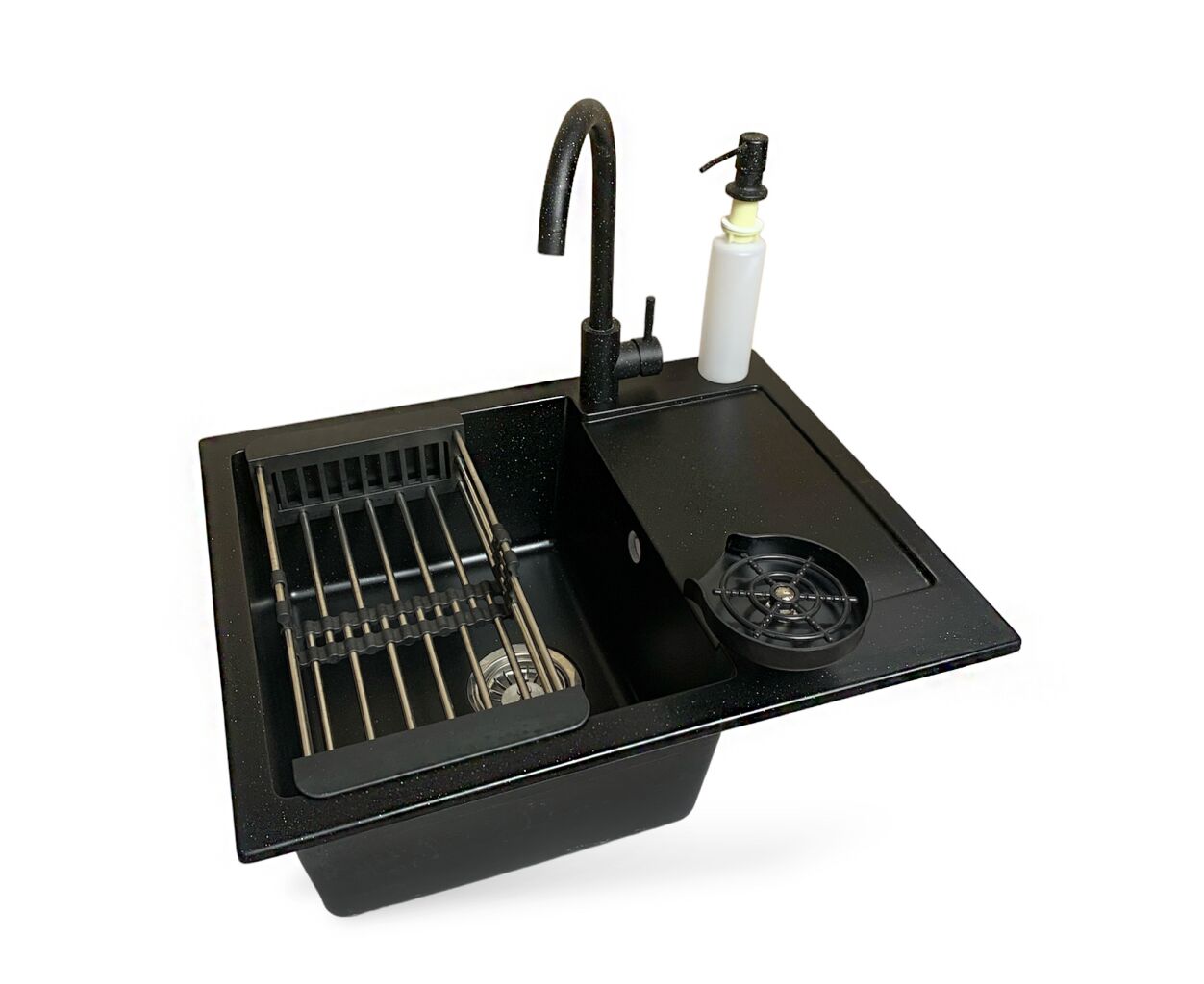 Мойка кухонная Adamant Minimal чорний + змішувач + дозатор + ополіскувач склянок + коланд (4824296106403)