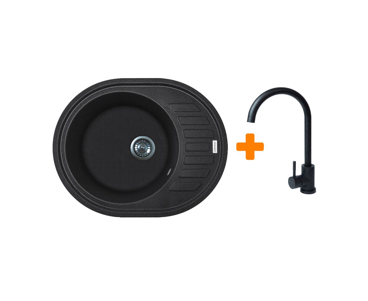 Мойка кухонная Adamant Ovum чорний + змішувач (1824296910403)