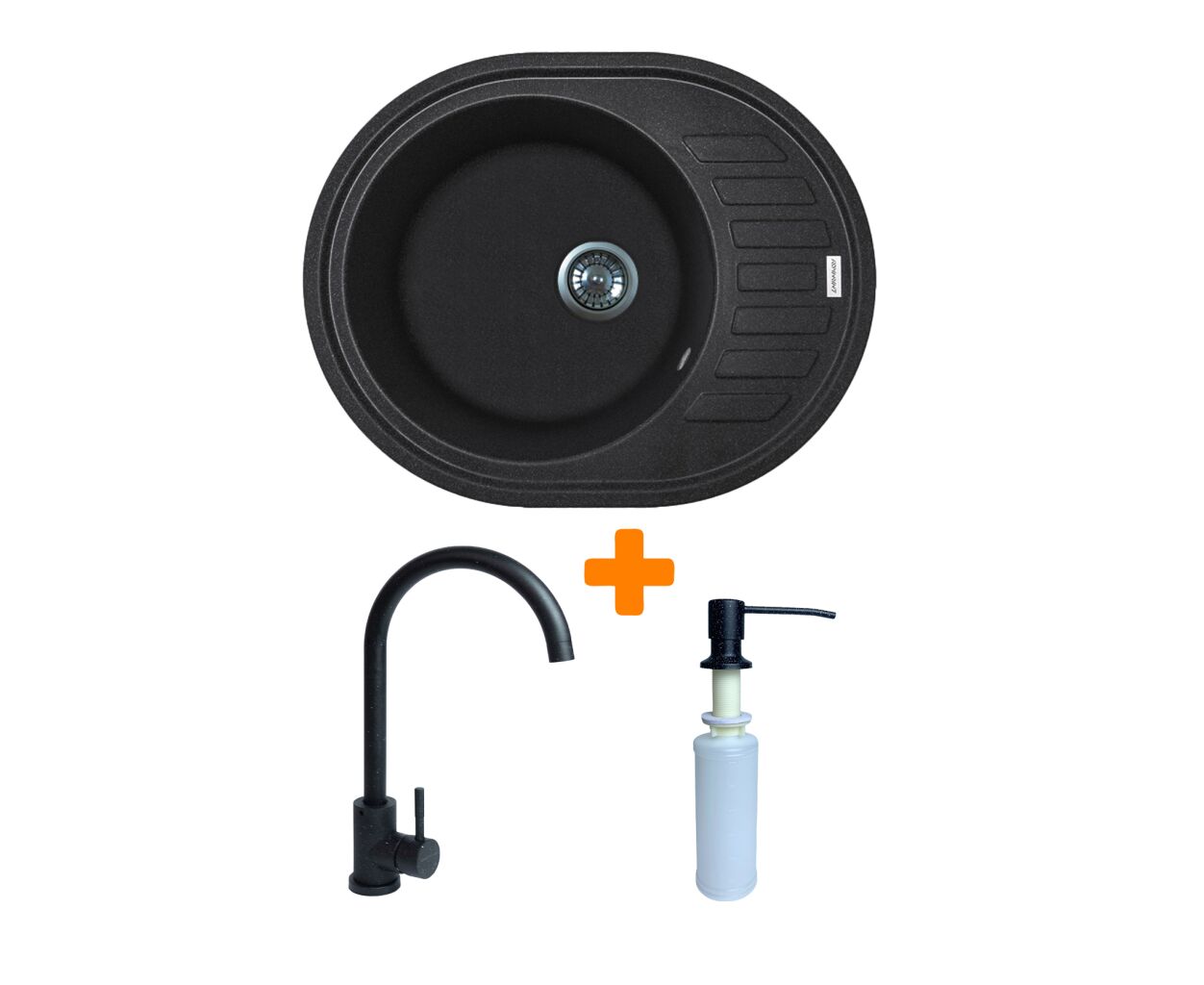 Мойка кухонная Adamant Ovum чорний + змішувач + дозатор (1824296900403)