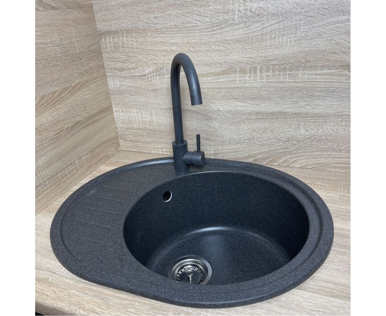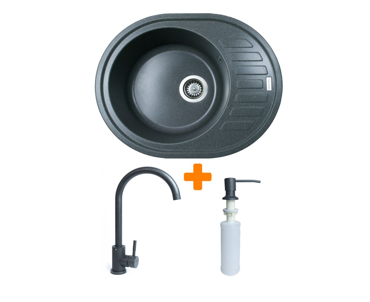 Мойка кухонная Adamant Ovum графіт + змішувач + дозатор (1824296900413)