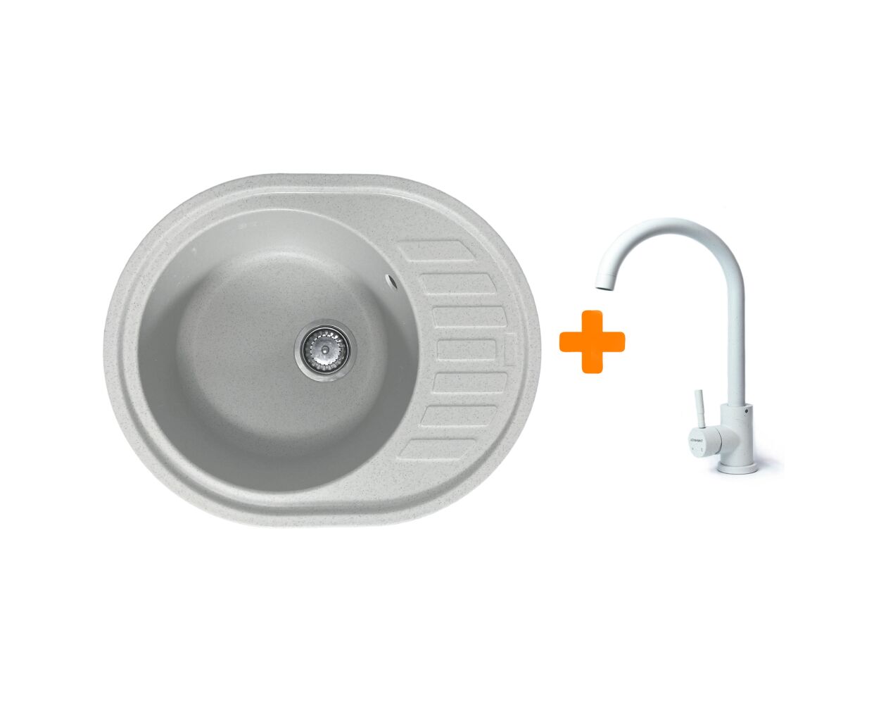 Мойка кухонная Adamant Ovum Old stone + змішувач (1824296910410)