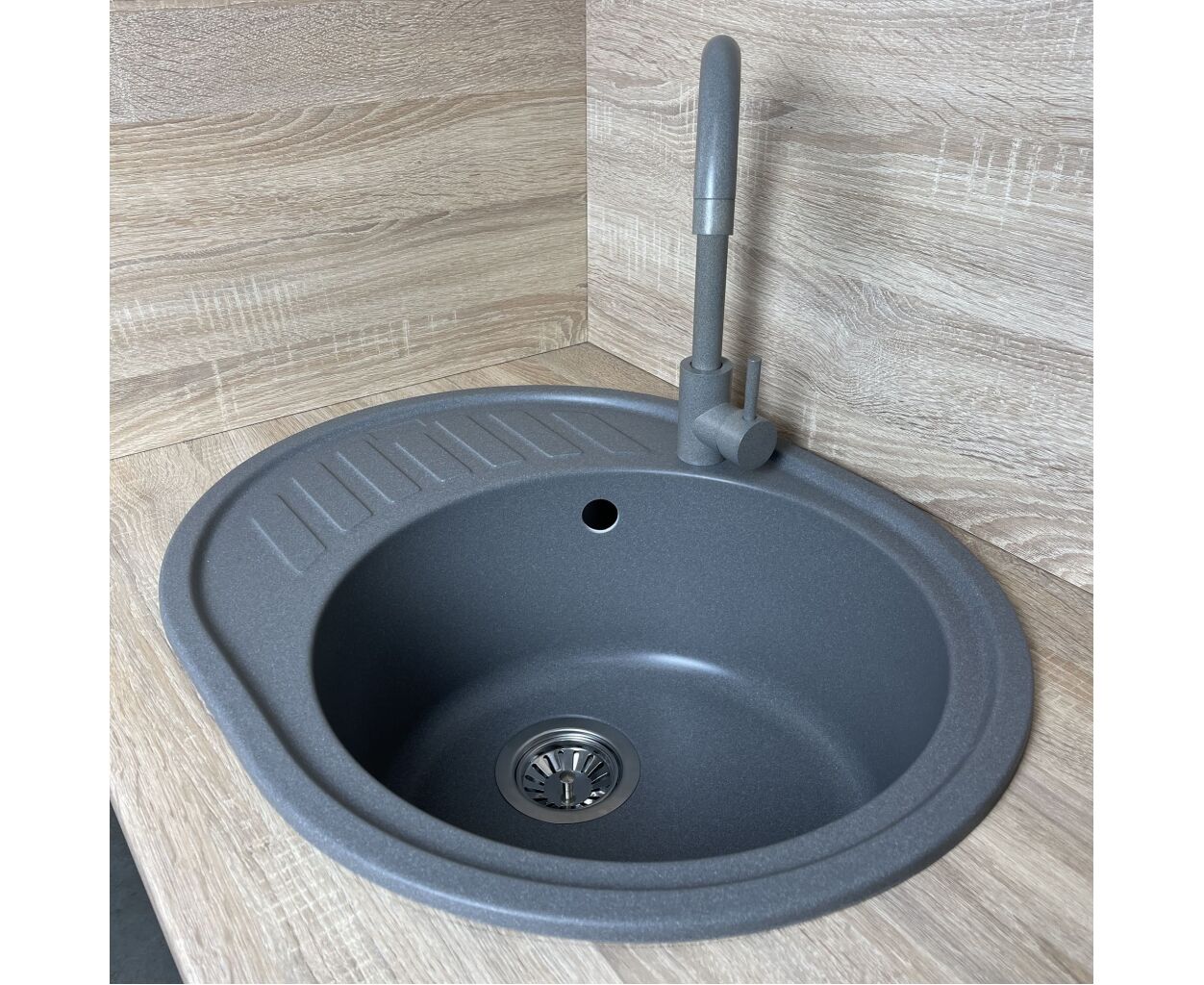 Мойка кухонная Adamant Ovum сірий + змішувач + дозатор (1824296900404)