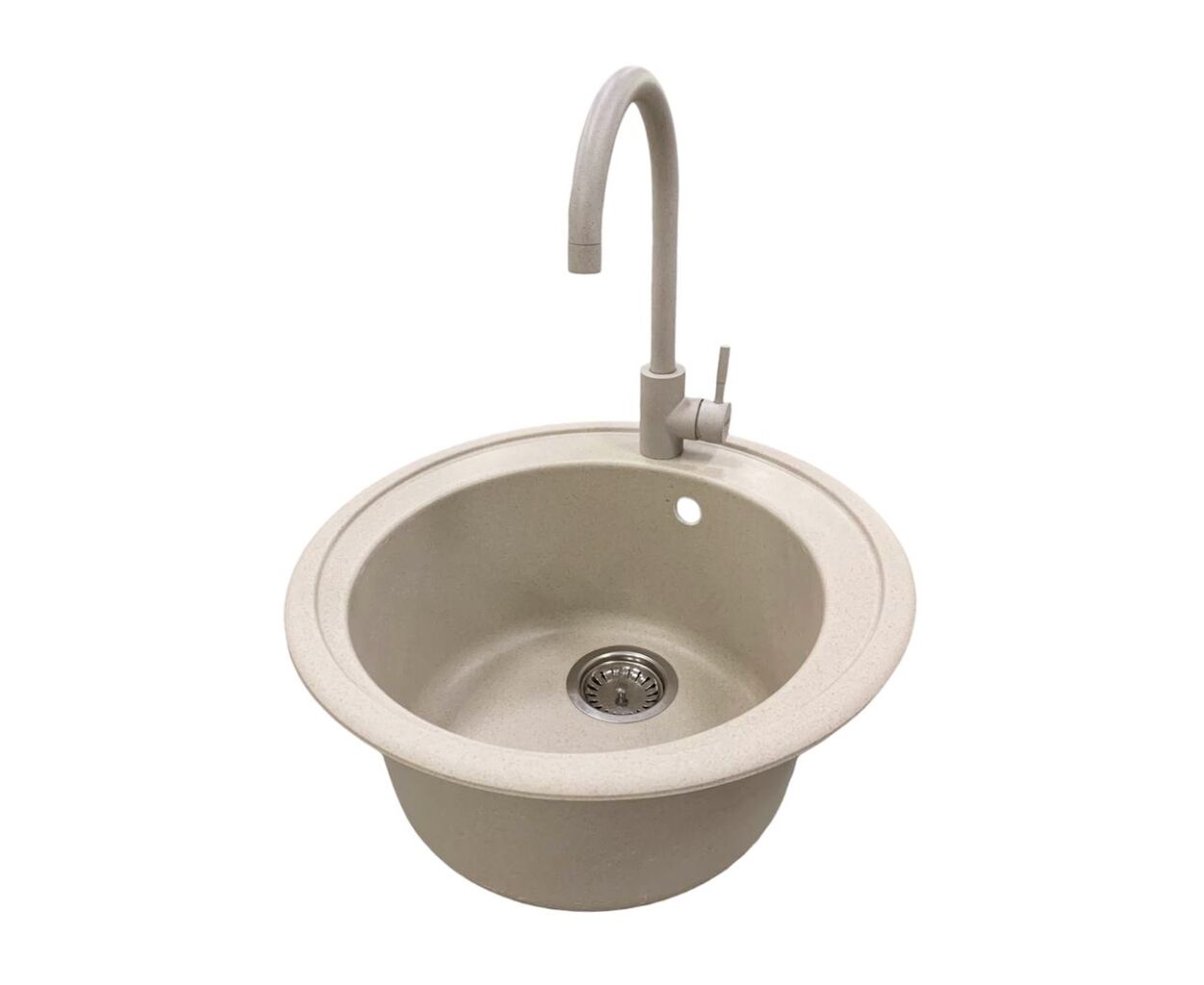 Кухонный набор ADAMANT SUN из искусственного камня создан для ежедневной эксплуатации и сочетает практичность с современным стилем. Технология Solid Surface обеспечивает прочность поверхности и устойчивость к высоким температурам и повреждениям. Круглая форма без крыла делает установку удобной даже в компактных пространствах. В комплект входит смеситель с плавным управлением и поворотом на 360°, что делает работу на кухне комфортной. Мойка гармонично сочетается с разными вариантами интерьера.