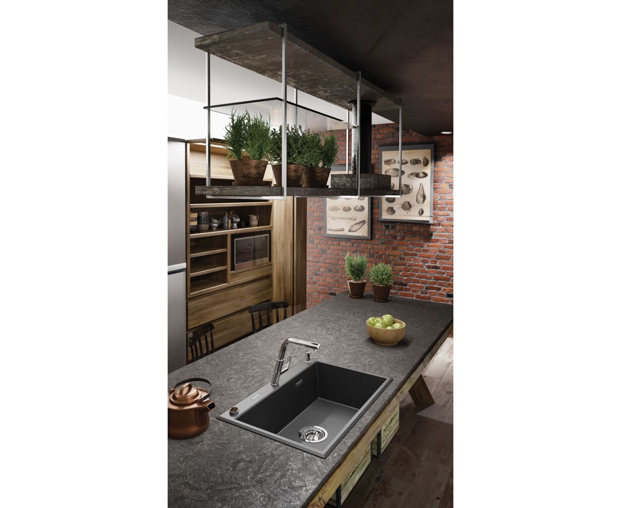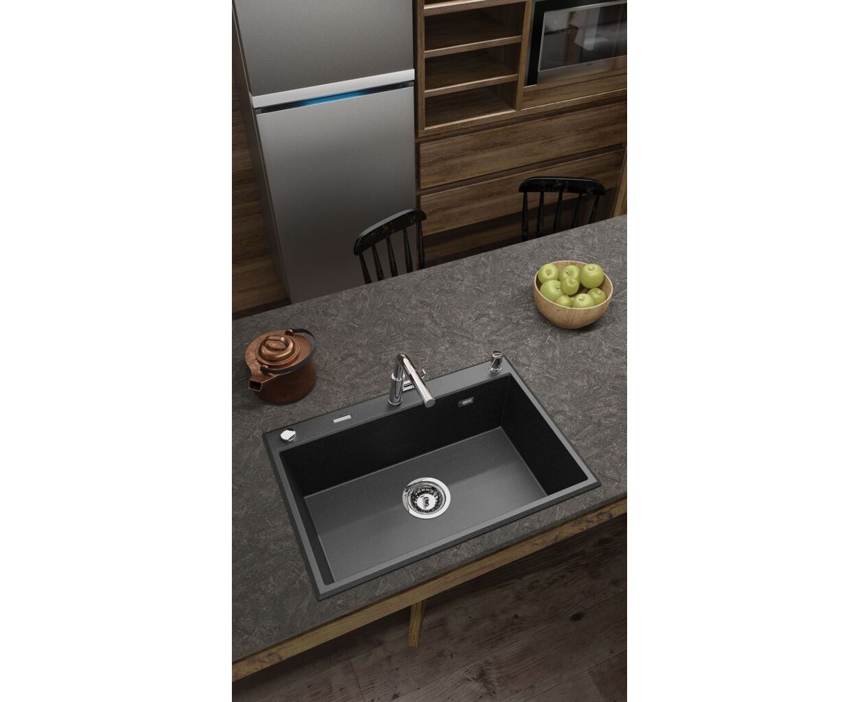 Серия - Eridan, Тип установки - врезная, Количество раковин - 1 основная, Форма - прямоугольная, Материал - гранит, Цвет - антрацит