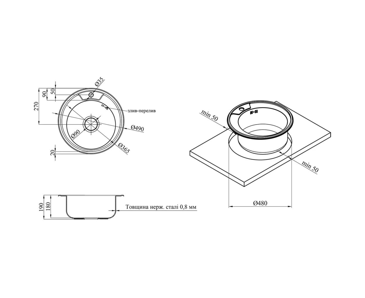 Характеристики Мойка кухонная Kroner Dekor-490 08180 (CV022765)