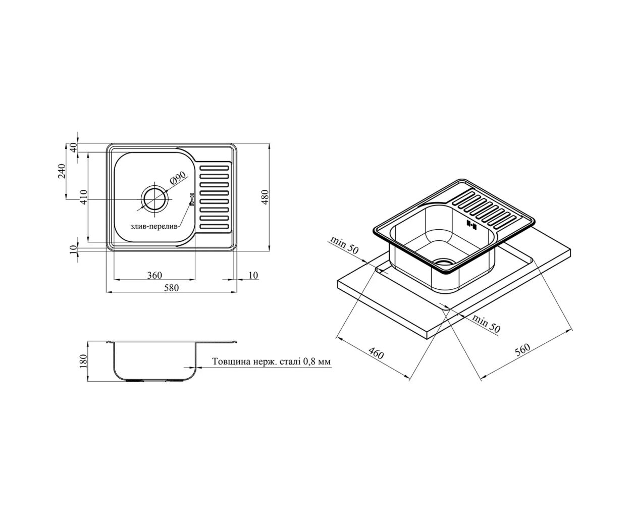 Серия - Dekor, Тип установки - врезная, Количество раковин - 1 основная, Форма - прямоугольная, Материал - нержавеющая сталь, Цвет - нержавеющая сталь, 2.167