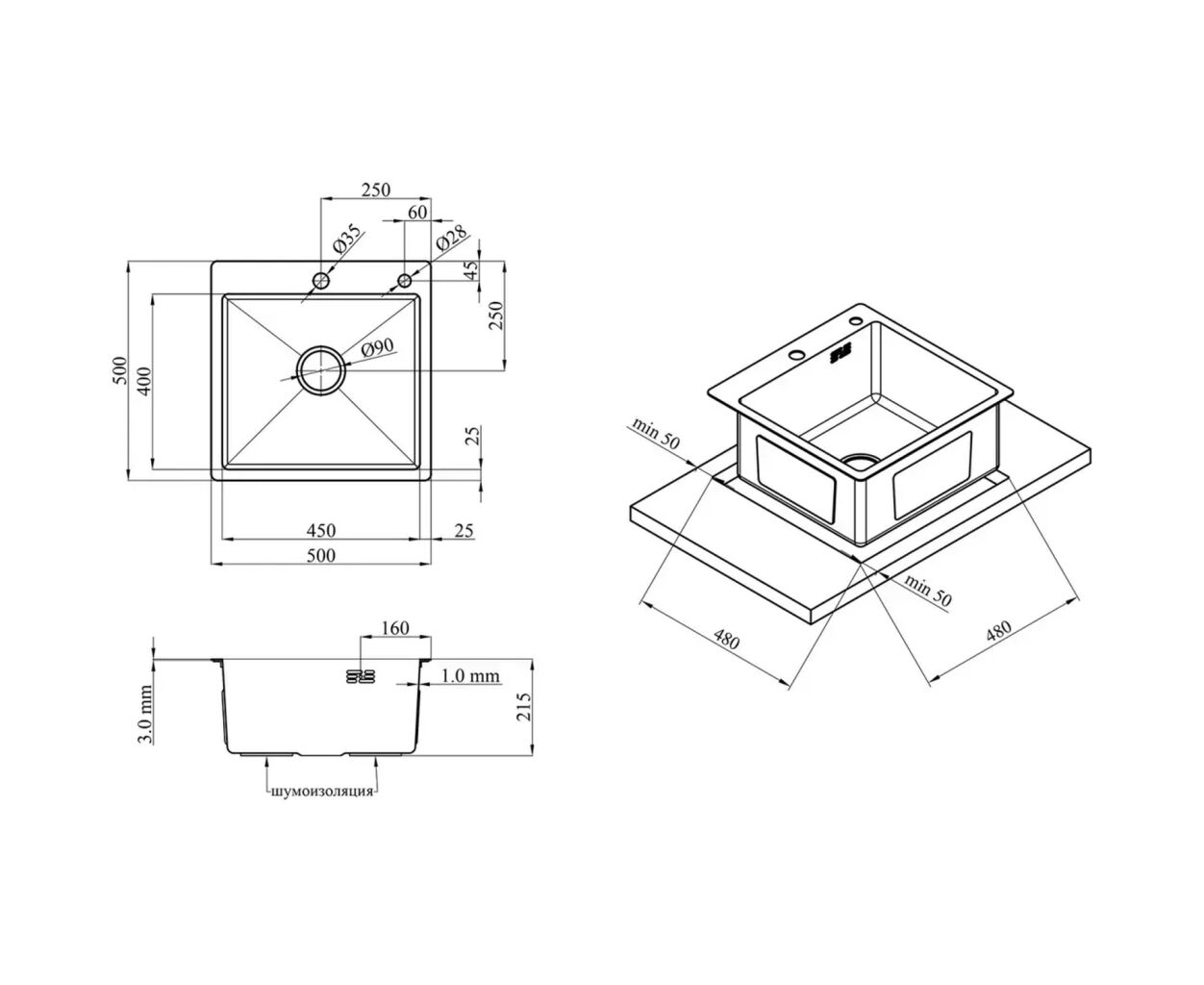 Характеристики Мойка кухонная Kroner Geburstet-5050HM (CV022800)