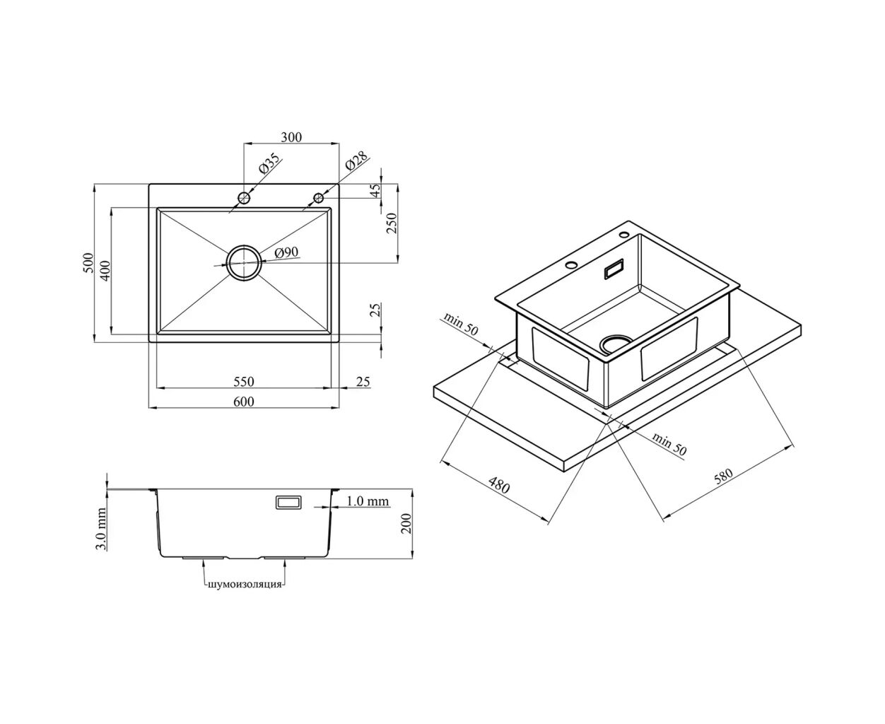 Характеристики Мойка кухонная Kroner Geburstet-6050HM (CV022802)