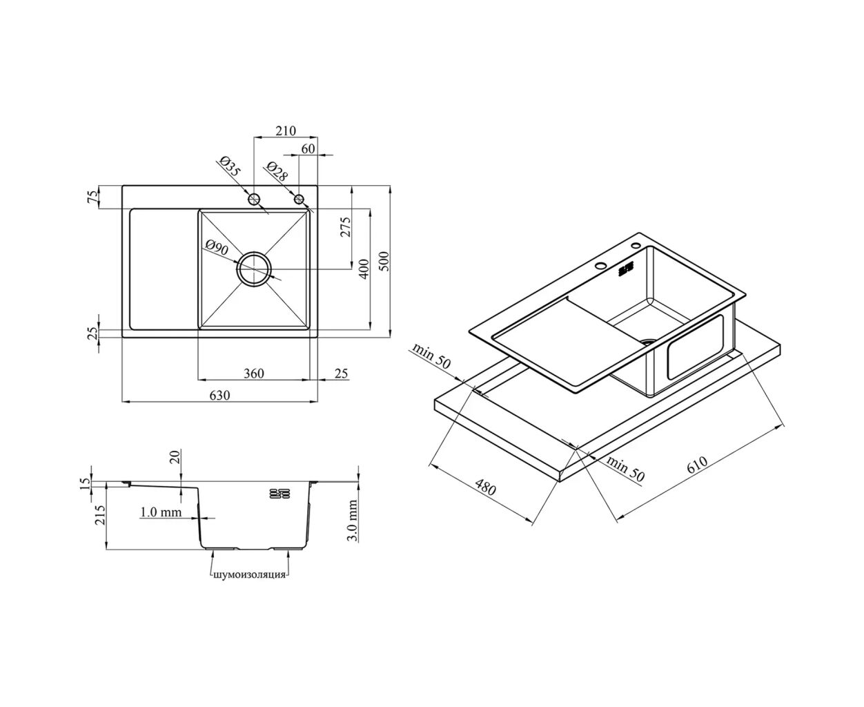 Характеристики Мойка кухонная Kroner Geburstet-6350RHM (CV031321)