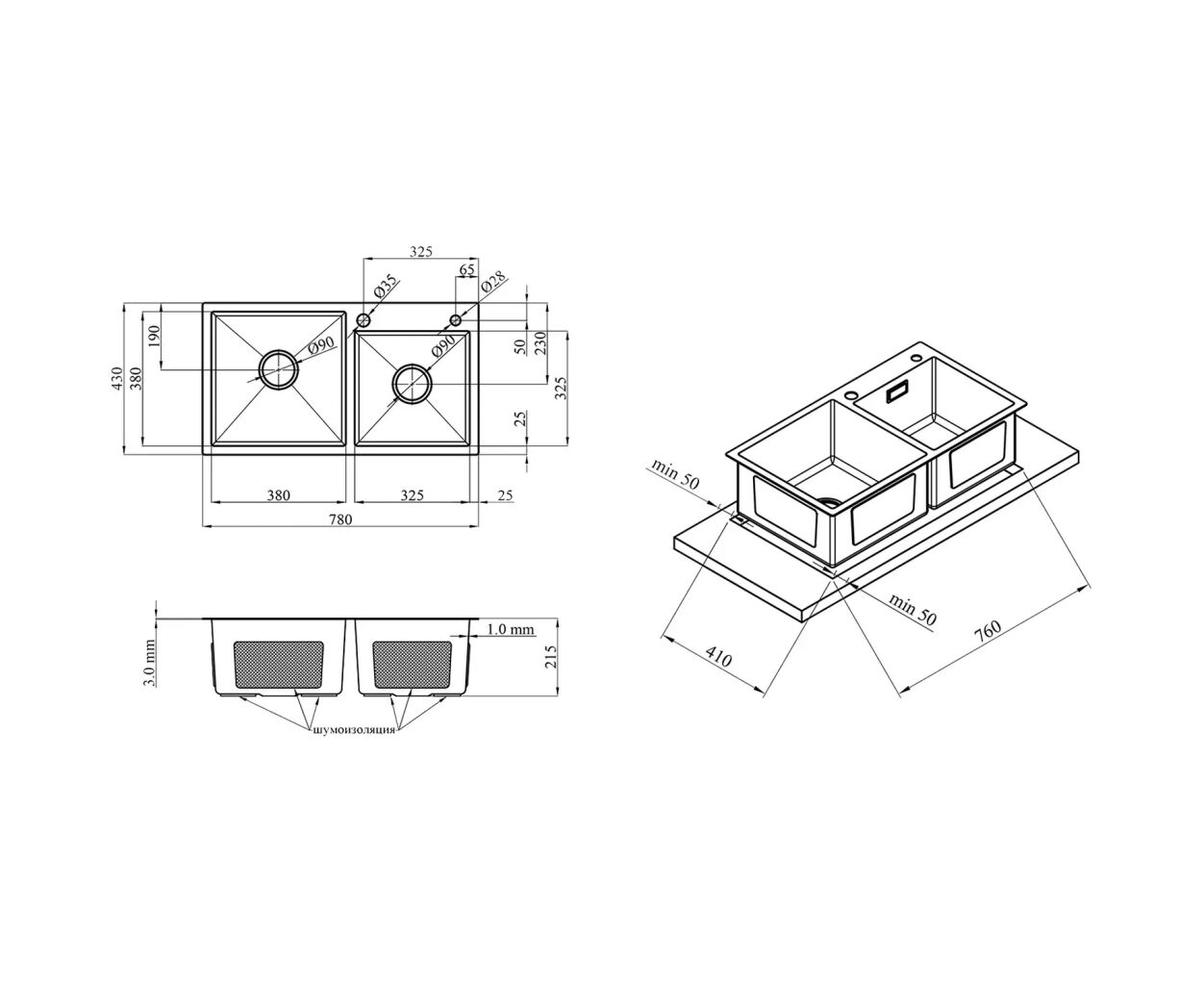 Характеристики Мойка кухонная Kroner Geburstet-7843ZHM (CV022805)