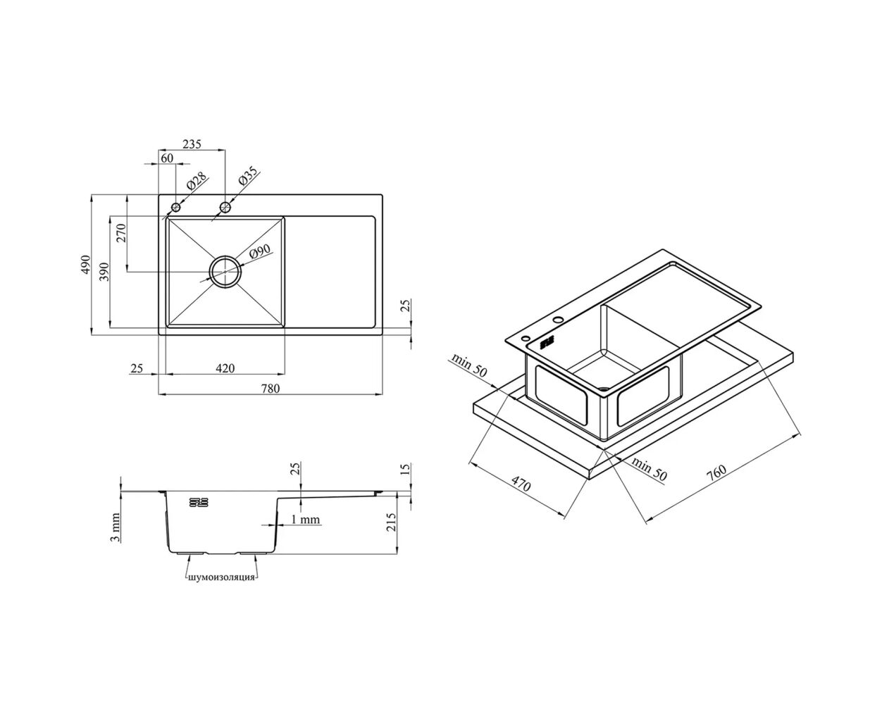 Характеристики Мойка кухонная Kroner Geburstet-7849LHM (CV025275)