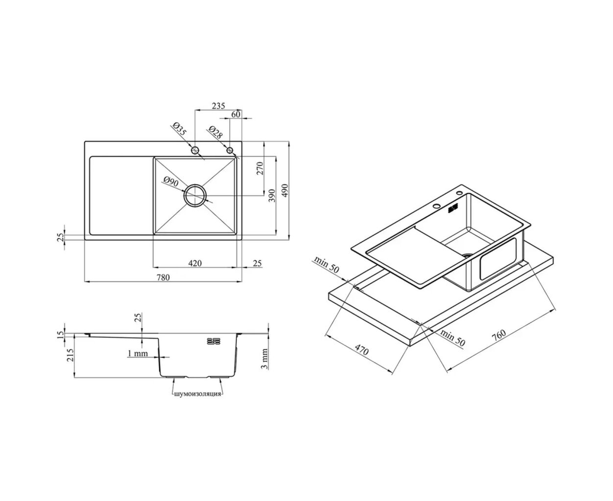 Характеристики Мойка кухонная Kroner Geburstet-7849RHM (CV025276)