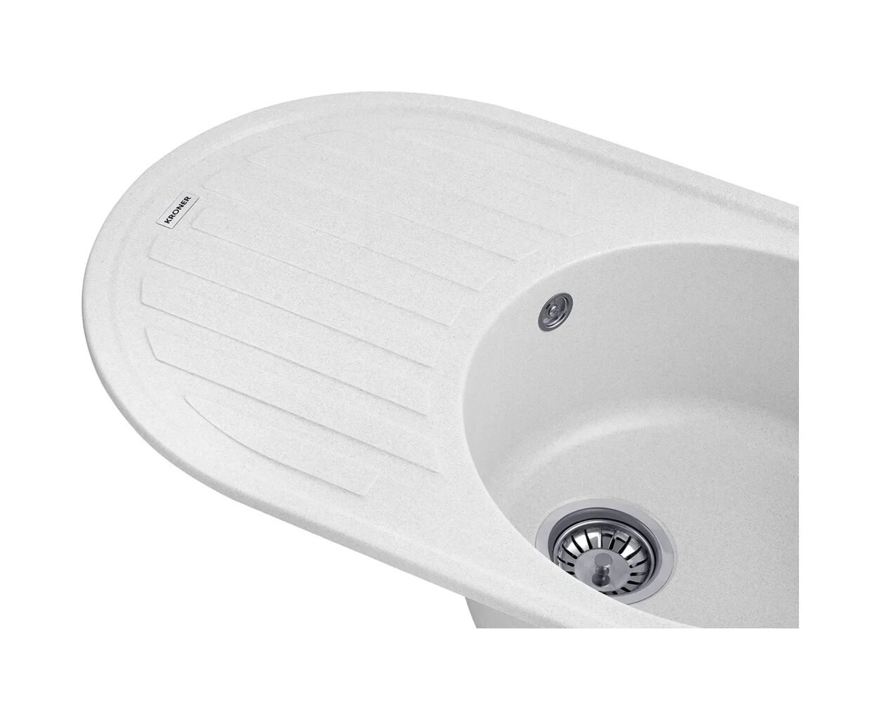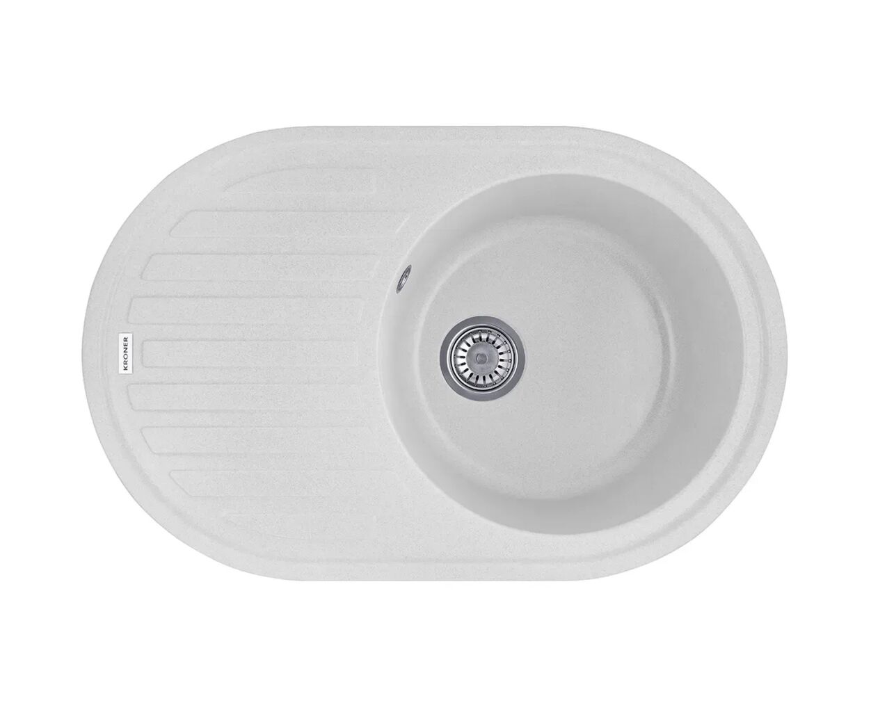 Кухонная мойка Kroner (KRP) Komposit GRA-7750 изготовлена из качественного искусственного камня с матовой поверхностью. Изделие из такого материала достаточно устойчиво к механическим повреждениям, а поверхность выдерживает температурные перепады.