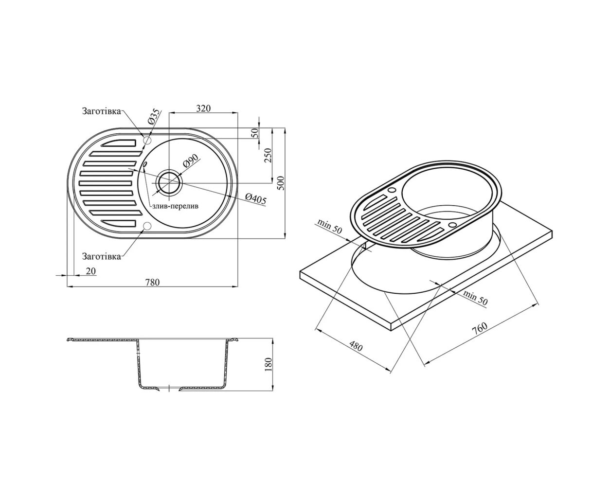 Тип и основные размеры соответствуют указанным на чертеже, но, ввиду особенностей производства и материалов, размеры могут варьироваться в пределах от -3 до -7 мм, поэтому вырез в столешнице необходимо производить исключительно при наличии мойки. Производитель оставляет за собой право вносить изменения в конструкцию изделий и комплектацию, которые не ухудшают качество, без предварительного уведомления.