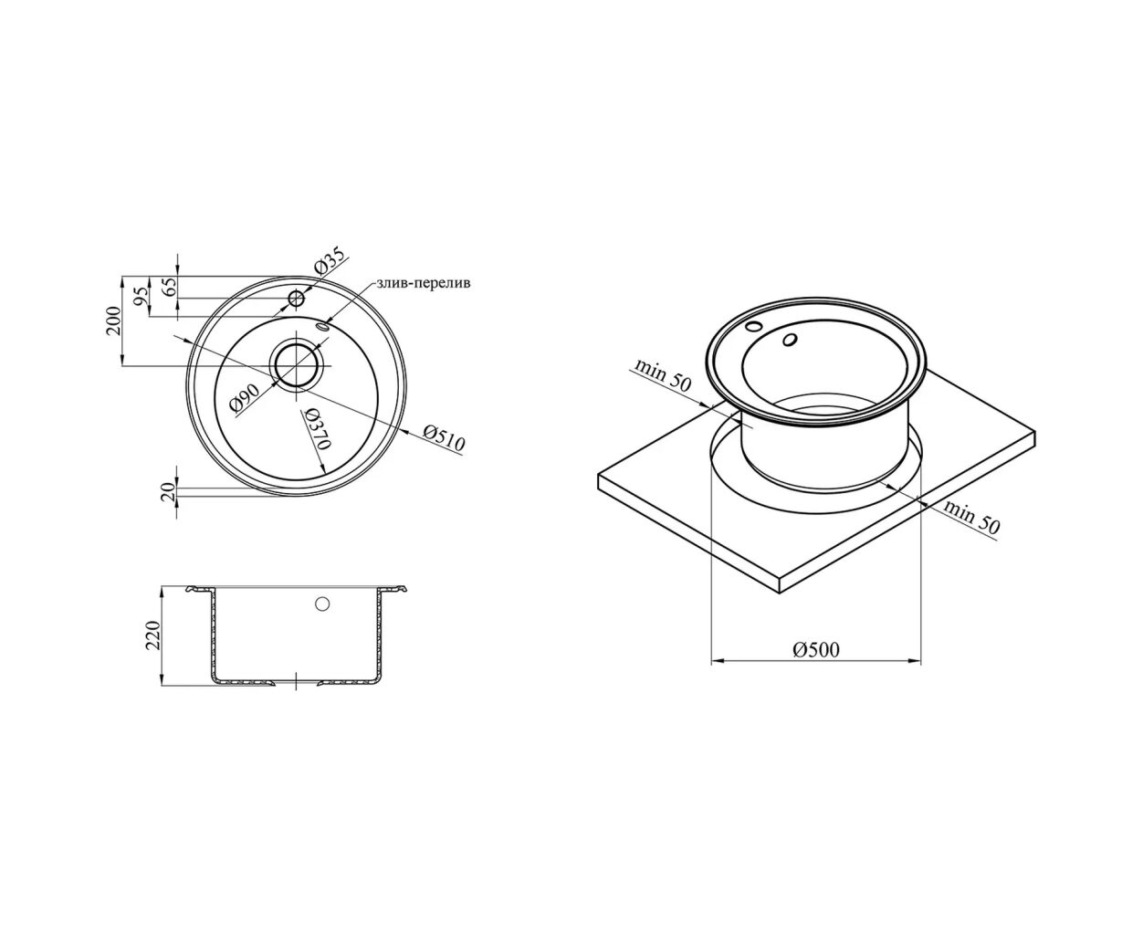 Характеристики Мойка кухонная Kroner KompositSCH-510 (CV027405)