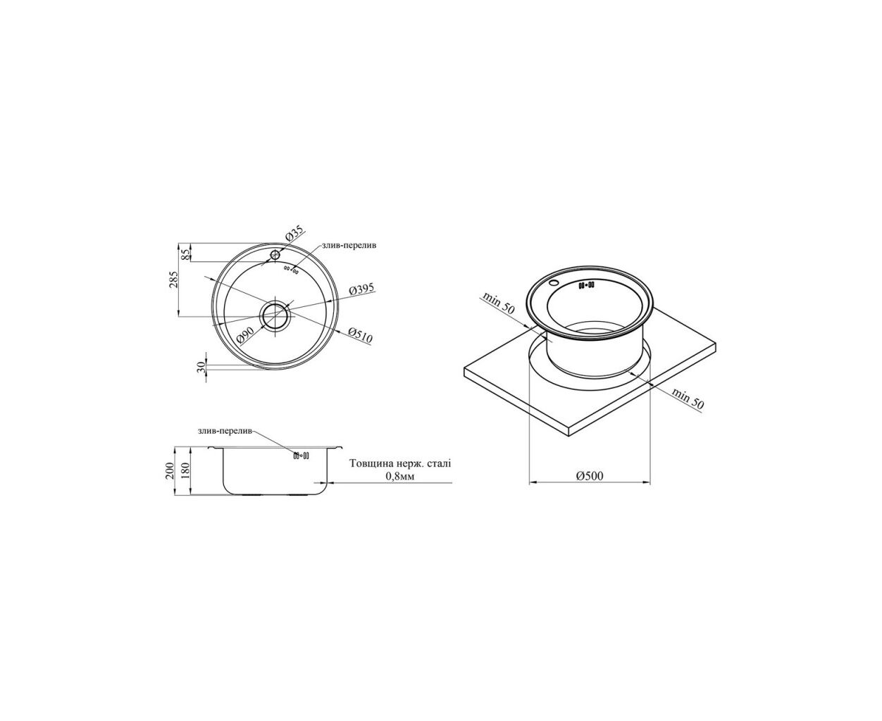 Характеристики Мойка кухонная Kroner Satin-510 08180 (CV022770)
