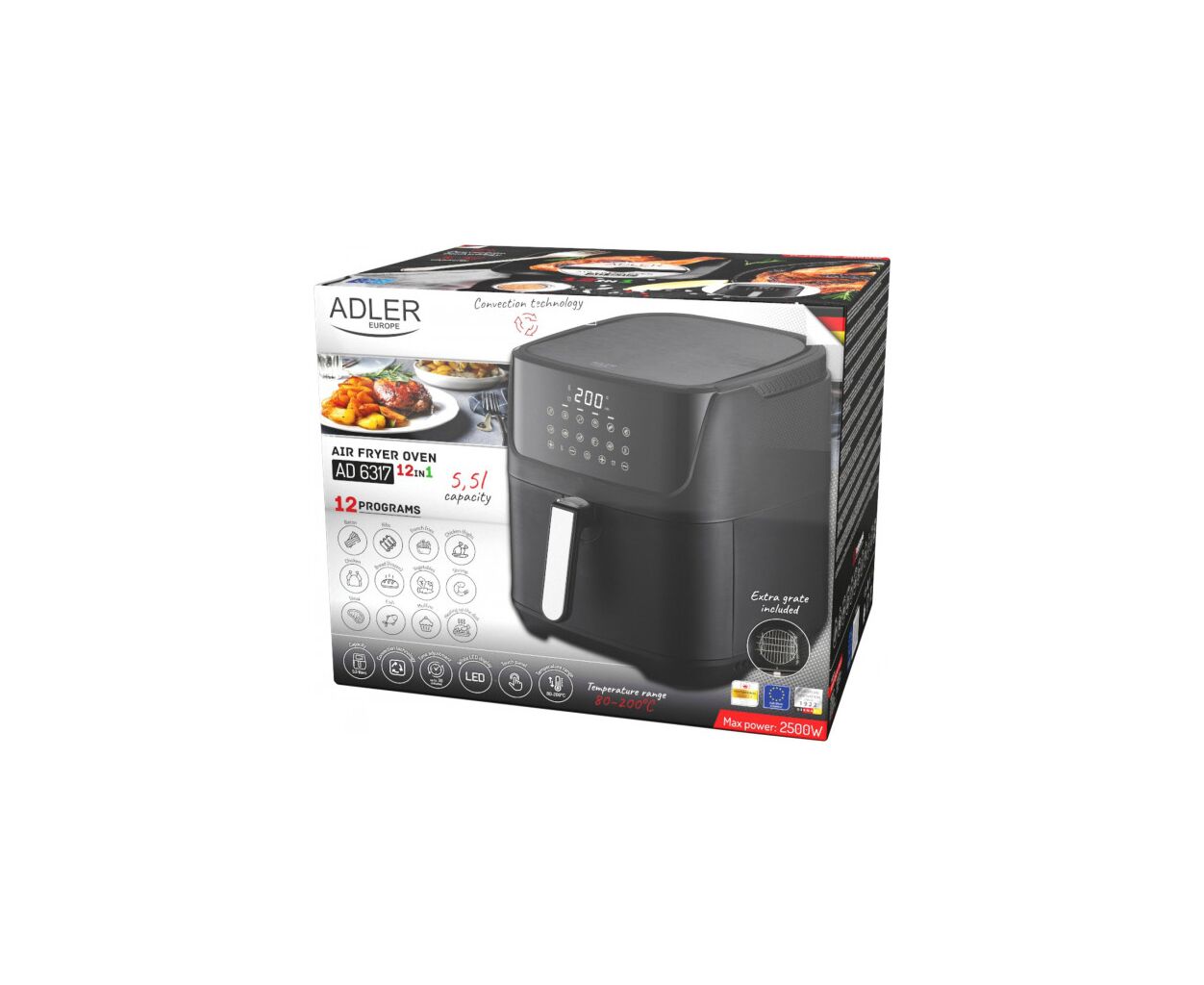 С мультипечью Adler AD 6317 приготовление пищи станет для вас увлекательным процессом – она оснащена сенсорной панелью управления с 12 самыми популярными предварительно установленными программами и кнопками регулировки температуры пищи (от 80°C до 200°C).
