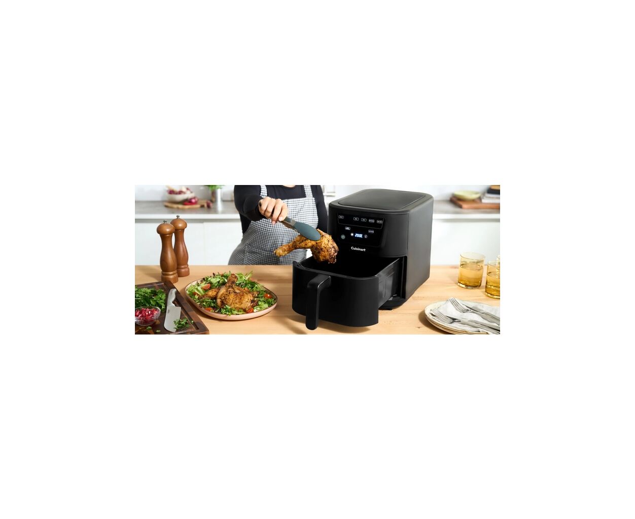 Откройте для себя универсальность приготовления с обновлённой компактной фритюрницей, которая сочетает стиль, мощность и удобство. Благодаря корпусу на 36% тоньше по сравнению с моделью AIR200, она экономит место на кухне, при этом предлагая на 33% больший объём. Вместительная корзина объёмом 7,6 литра позволяет готовить до 8 порций за один раз — идеально для семейных обедов или приёма гостей.