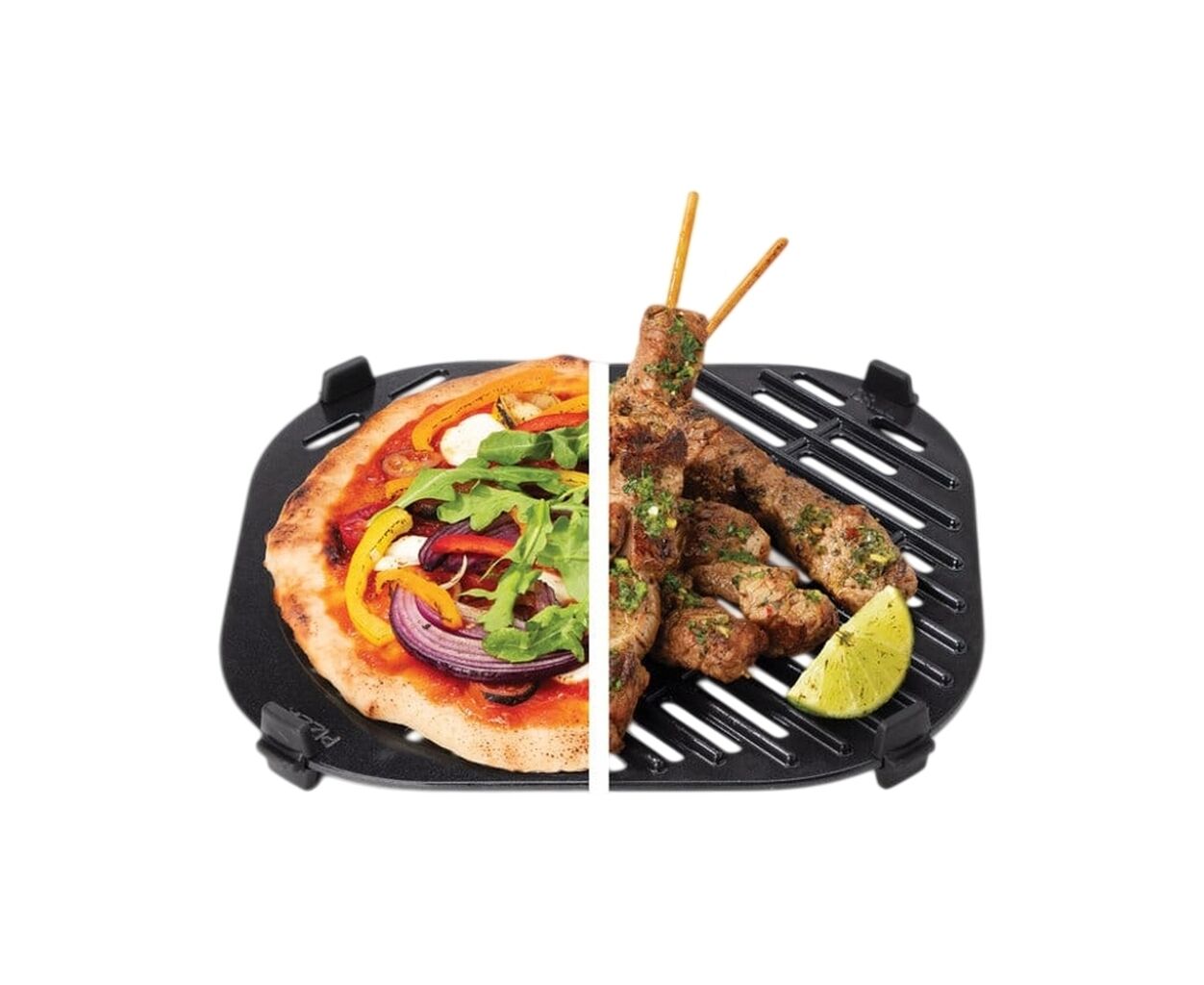Этот двухсторонний аксессуар с керамическим покрытием без PFAS расширяет возможности вашей аэрофритюрницы двумя дополнительными опциями приготовления: 1. Тарелка для гриля, которая обеспечивает вкус открытого огня без обугленных следов и сложной очистки. 2. Тарелка для хрустящей корочки и пиццы, разработанная для идеального жарки ваших любимых блюд или выпечки пиццы до совершенства, одновременно расплавляя и сочетая ваши любимые начинки.