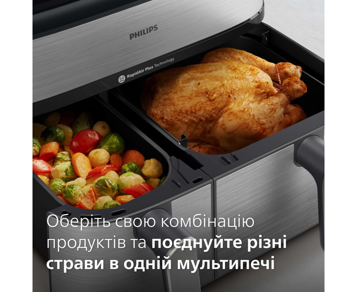 Благодаря запатентованной технологии RapidAir Вы будете каждый раз получать хрустящую, нежную и равномерно прожаренную пищу.