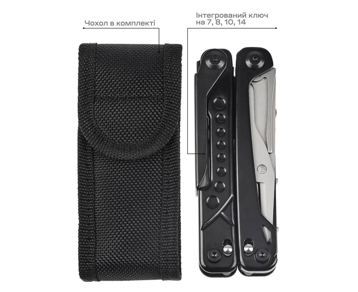 Инструменты для открывания бутылок и консервов, а также специальный инструмент для открытия посылок превращают любую вашу задачу в лёгкое и приятное занятие. Набор ключей на 7, 8, 10 и 14 мм позволяет быстро решить множество технических вопросов. Благодаря шилу-кернеру и пазу для снятия изоляции, этот мультитул на 100% удовлетворит ваши бытовые и профессиональные потребности.