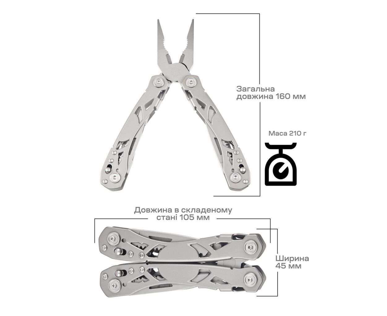 Мультитул Active Crab всего 160 мм в длину и весом 210 г, выполнен в серебристом цвете, что добавляет ему эстетичности. Использование качественных материалов гарантирует его надежность и долговечность, делая его идеальным выбором для тех, кто ценит качество и функциональность.