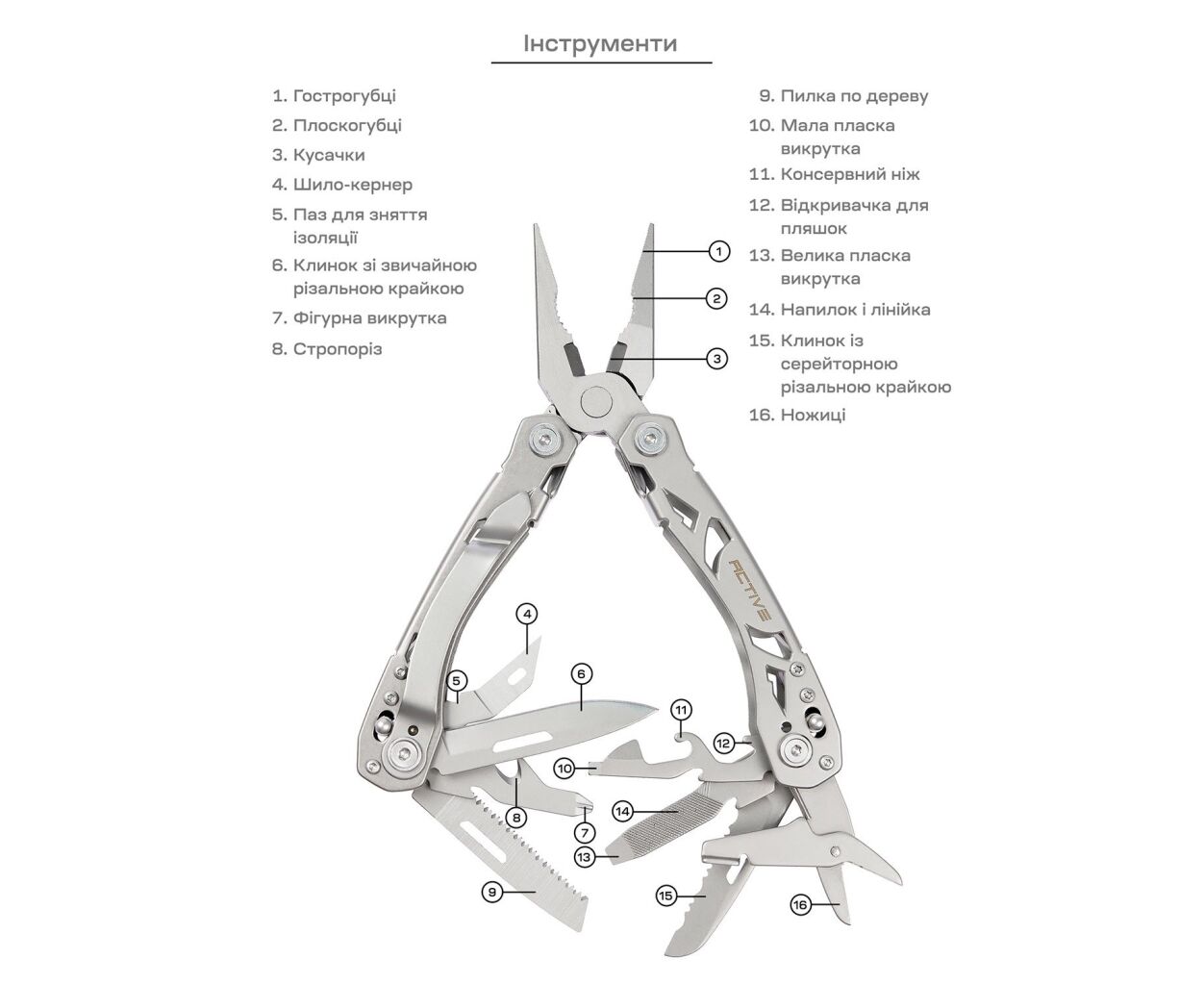 Характеристики Мультитул Active Crab (GHK-PL102)