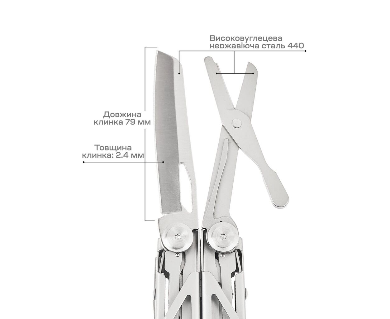 Мультитул Active Launch 2 (GHK6) от бренда Active Knives&Tools — это компактный, но многофункциональный помощник, который станет вашей правой рукой как в повседневной жизни, так и на природе. Созданный из высококачественной нержавеющей стали, он сочетает надежность и стиль. Сплавы марки 440 используются для клинка и ножниц, обеспечивая их долговечность и стойкость к износу, тогда как другие инструменты изготовлены из стали марки 420. Всё это, в сочетании с яркой серебристой отделкой, делает мультитул не только функциональным, но и привлекательным.